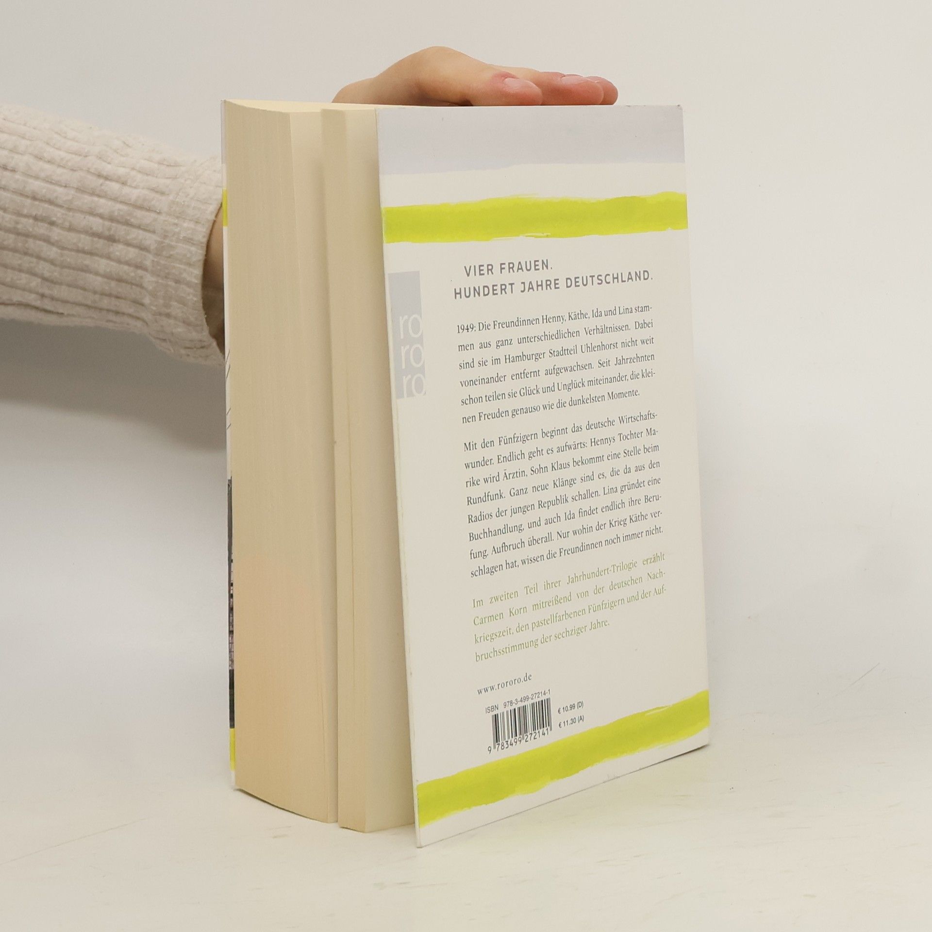 Vier Frauen. Hundert Jahre Deutschland.1949: Die Freundinnen Henny, Käthe, Ida und Lina stammen aus ganz unterschiedlichen Verhältnissen. Dabei sind sie im Hamburger Stadtteil Uhlenhorst nicht weit voneinander entfernt aufgewachsen. Seit Jahrzehnten schon teilen sie Glück und Unglück miteinander, die kleinen Freuden genauso wie die dunkelsten Momente. Mit den Fünfzigern beginnt das deutsche Wirtschaftswunder. Endlich geht es aufwärts: Hennys Tochter Marike wird Ärztin, Sohn Klaus bekommt eine Stelle beim Rundfunk. Ganz neue Klänge sind es, die da aus den Radios der jungen Republik schallen. Lina gründet eine Buchhandlung, und auch Ida findet endlich ihre Berufung. Aufbruch überall. Nur wohin der Krieg Käthe verschlagen hat, wissen die Freundinnen noch immer nicht.Im zweiten Teil ihrer Jahrhundert-Trilogie erzählt Carmen Korn mitreißend von der deutschen Nachkriegszeit, den pastellfarbenen Fünfzigern und der Aufbruchsstimmung der Sechzigerjahre.