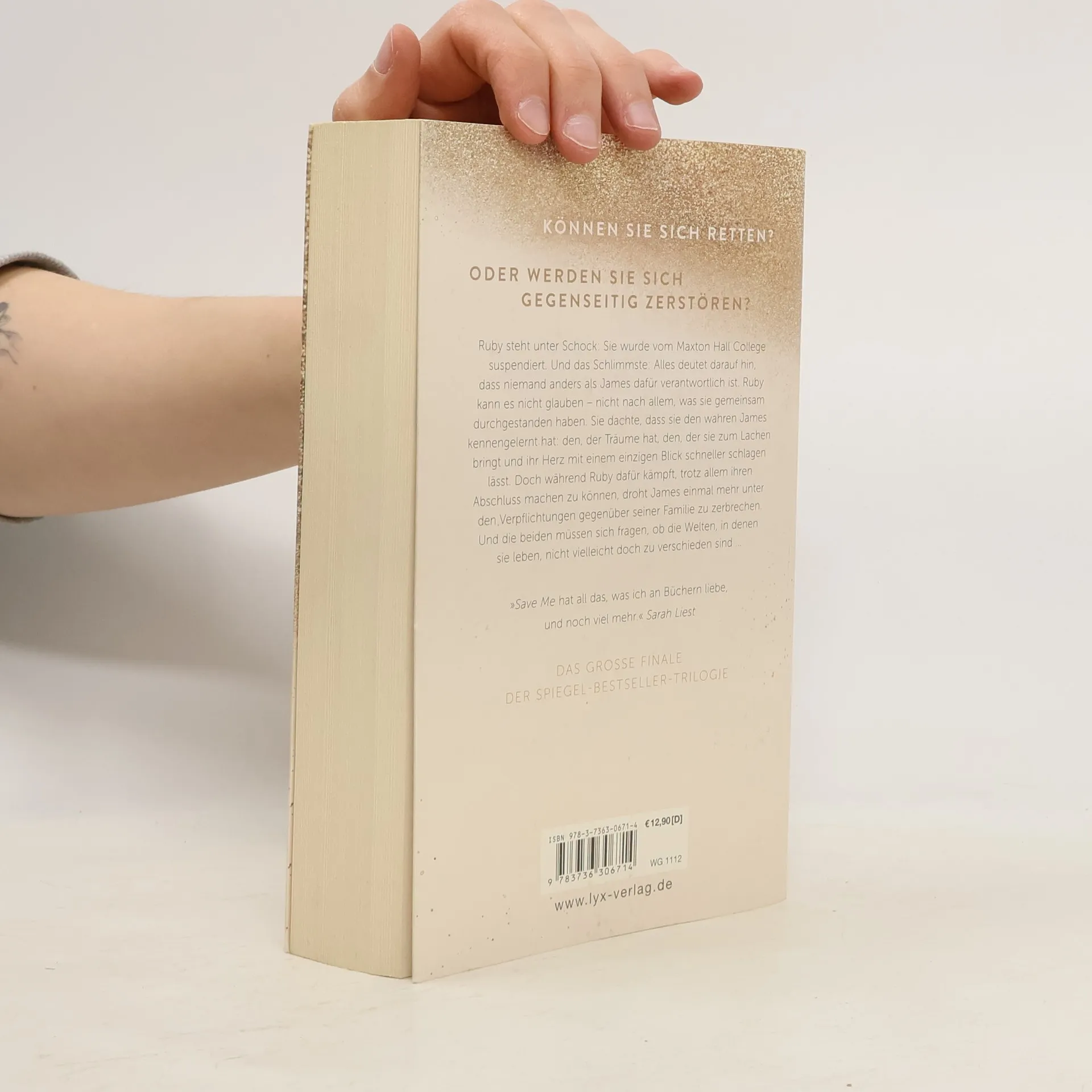 Können sie sich retten? Oder werden sie sich gegenseitig zerstören? Ruby steht unter Schock: Sie wurde vom Maxton-Hall-College suspendiert. Und das Schlimmste: Alles deutet darauf hin, dass niemand anders als James dafür verantwortlich ist. Ruby kann es nicht glauben - nicht nach allem, was sie gemeinsam durchgestanden haben. Sie dachte, dass sie den wahren James kennengelernt hat: den, der Träume hat, den, der sie zum Lachen bringt und ihr Herz mit einem einzigen Blick schneller schlagen lässt. Doch während Ruby dafür kämpft, trotz allem ihren Abschluss machen zu können, droht James einmal mehr unter den Verpflichtungen gegenüber seiner Familie zu zerbrechen. Und die beiden müssen sich fragen, ob die Welten, in denen sie leben, nicht vielleicht doch zu verschieden sind ... „ Save Me hat all das, was ich an Büchern liebe, und noch viel mehr.“ Sarah-liest „Gefühlvoll, mitreißend, voller Liebe.“ Nichtohnebuch Das große Finale der mitreißenden Liebesgeschichte von Ruby und James!