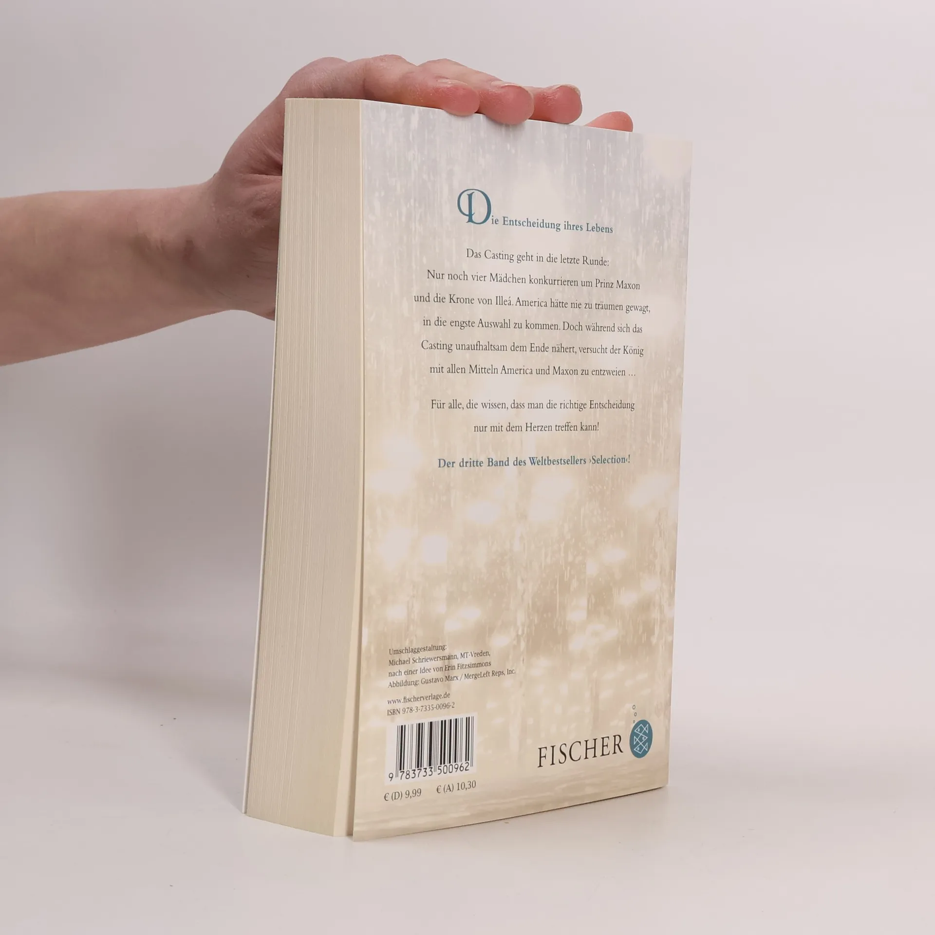 Der dritte Band des Weltbestsellers ›Selection‹ im Taschenbuch 35 perfekte Mädchen waren angetreten. Nun geht das Casting in die letzte Runde: Vier Mädchen träumen von der Krone Illeás und einer Märchenhochzeit. America ist noch immer die Favoritin von Prinz Maxon,doch auch ihre Jugendliebe Aspen umwirbt sie noch immer heftig. Sie zögert, denn sie liebt beide. Doch jetzt ist der Moment der Entscheidung gekommen: America hat ihr Herz vergeben, mit allen Konsequenzen. Komme, was wolle … Fortsetzung der romantischen ›Selection‹-Serie für Mädchen ab 14! Monatelang auf der Spiegel-Beststellerliste