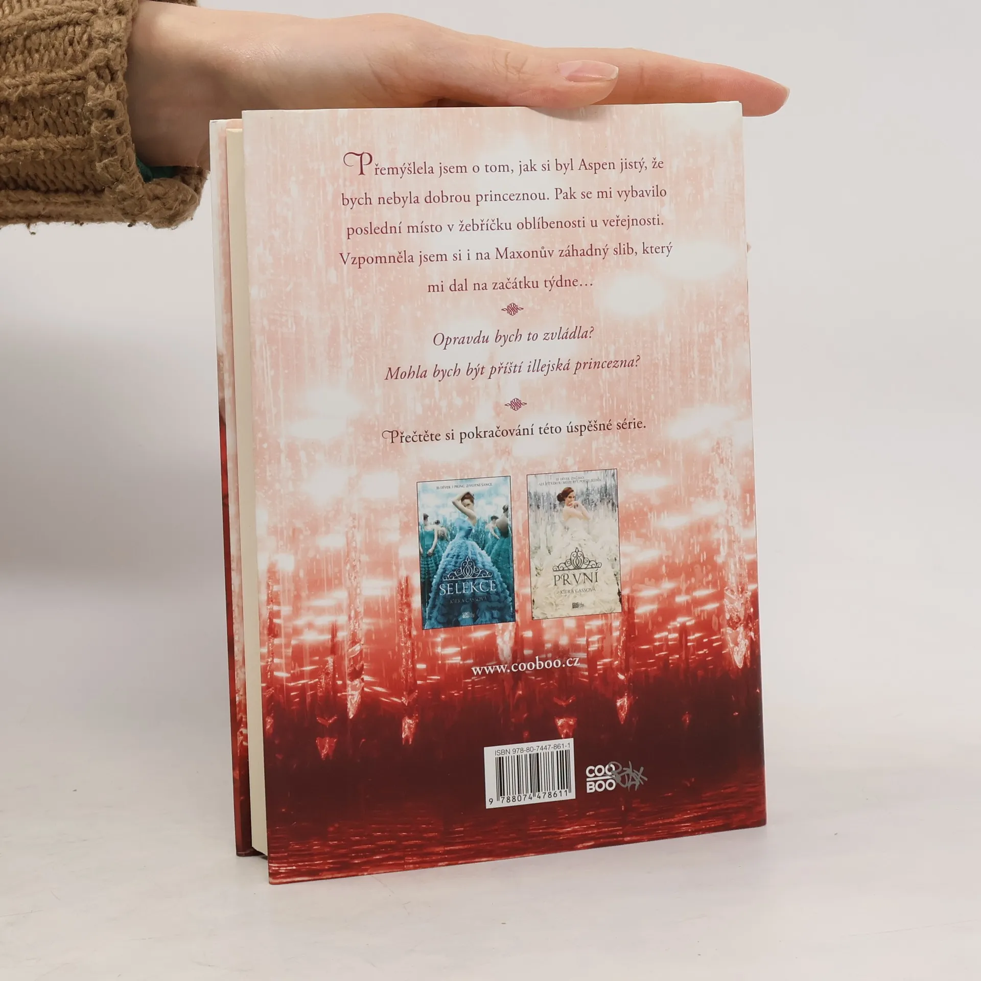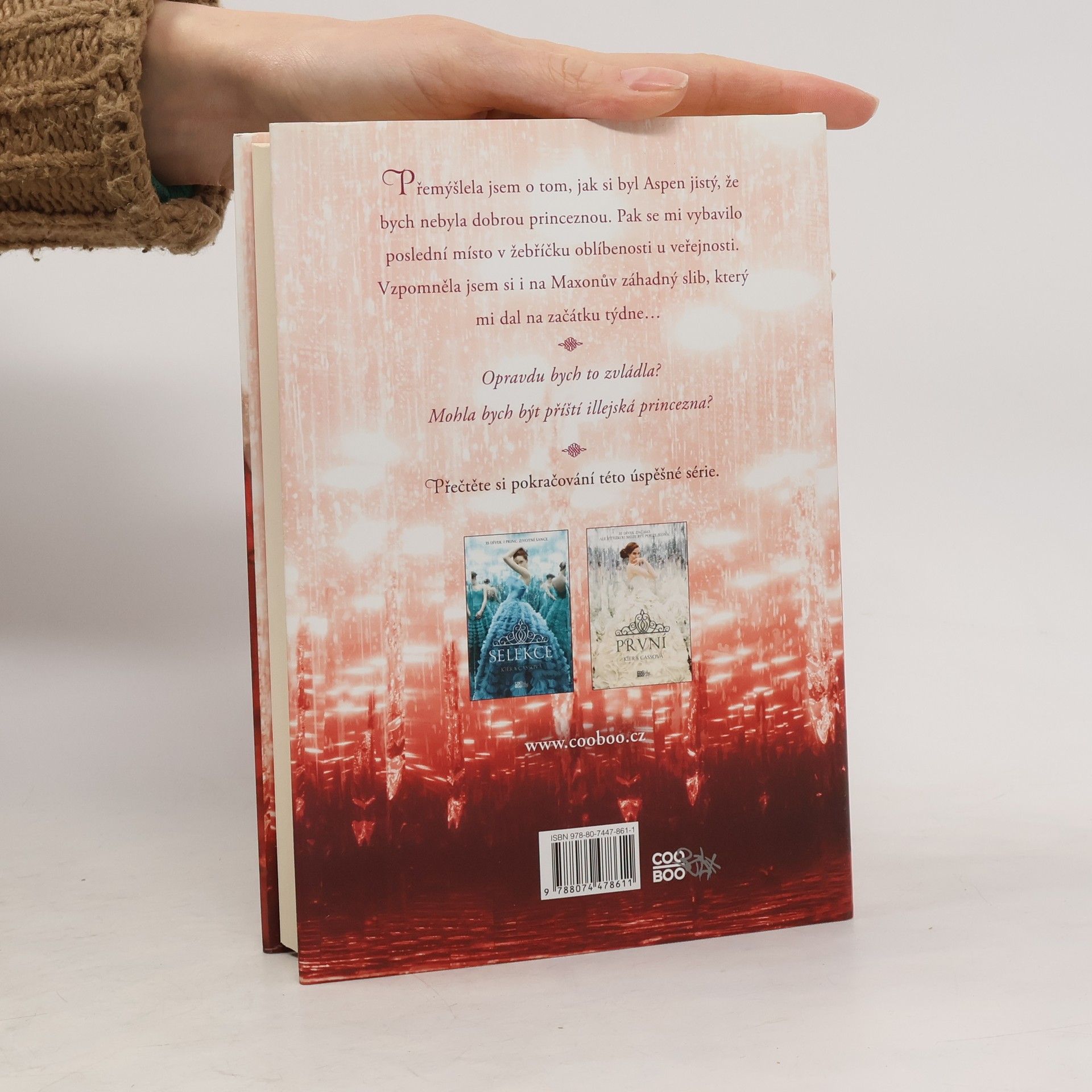 Třicet pět dívek přišlo do paláce soutěžit v Selekci. Všechny až na šest byly poslány domů. A jen jedna se provdá za prince Maxona a bude korunována princeznou Illey. America si pořád není jistá, kde leží její srdce. Když je s Maxonem, nechává se unášet jejich novou dechberoucí reakcí a nesní o ničem jiném, než být s ním. Ale kdykoliv vidí Aspena vykonávajícího práci strážce v paláci, je strhávána vzpomínkami na společný život, který si plánovali. Jak se skupinka zmenšila na Elitu, jsou ostatní dívky ještě odhodlanější získat Maxona - a Americe běží čas na rozhodnutí. Právě když si je America jistá, že se rozhodla, zničující ztráta ji donutí znovu o všem začít pochybovat. A zatímco se snaží představit si budoucnost, agresivní rebelové odhodlaní svrhnout monarchii nabývají na síle a jejich plány by mohly zničit její šanci na jakýkoliv šťastný konec.