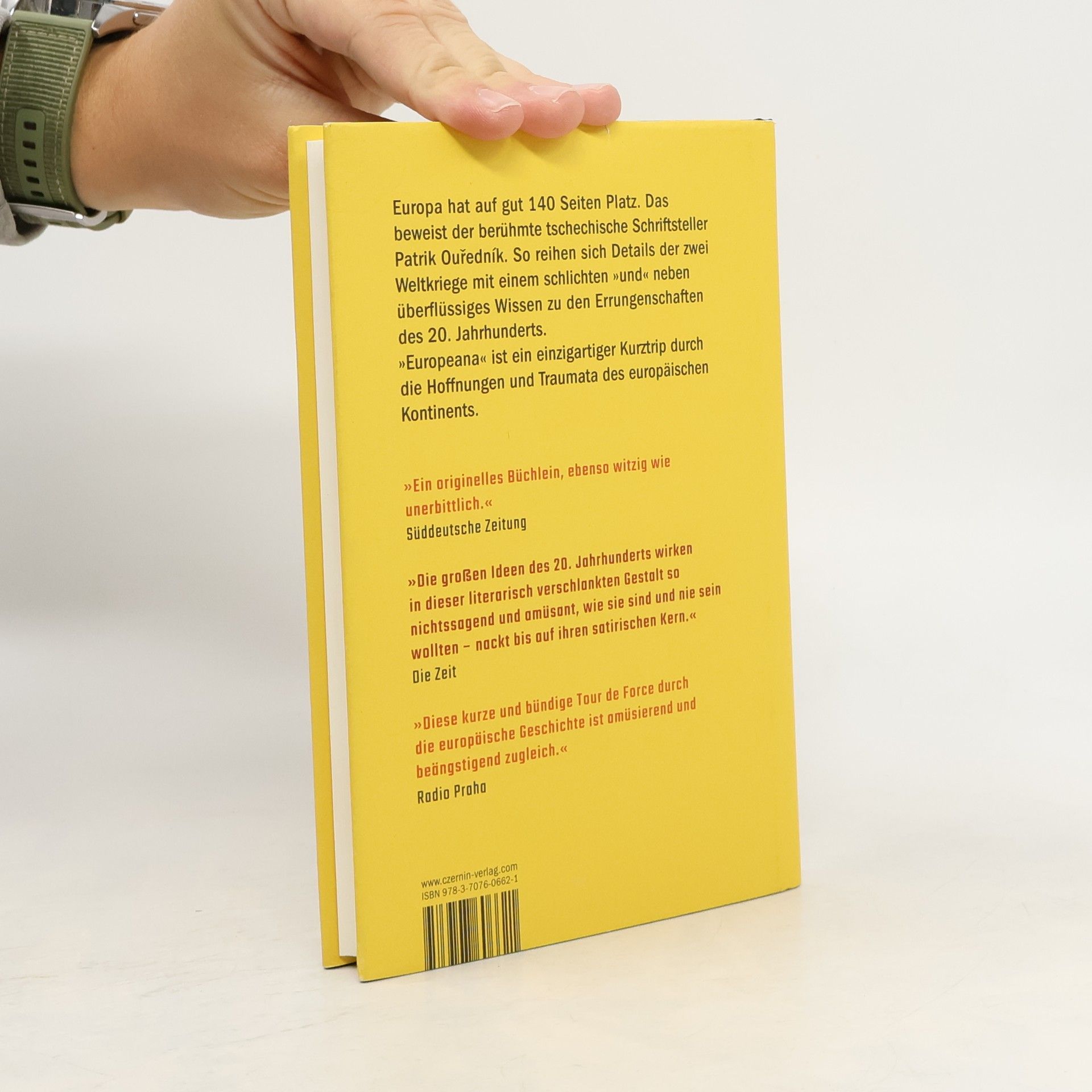 Dass Europa auf gut 140 Seiten Platz hat, beweist der berühmte tschechische Schriftsteller Patrik Ourednik. Details der zwei Weltkriege reihen sich mit einem schlichten »und« neben überflüssiges Wissen zu den Errungenschaften des 20. Jahrhunderts, wodurch die Grausamkeiten des einen und die Skurrilitäten des anderen erst richtig zur Geltung kommen. Ouredniks Kurztrip durch das Europa des letzten Jahrhunderts ist ein zeitkritisches Werk über die Hoffnungen und Traumata der europäischen Gemeinschaft, eine Collage der wechselvollen und widersprüchlichen Geschichte Europas. Wir erfahren in kurzer Abfolge, dass im Ersten Weltkrieg 15.508 Kilometer Soldaten fielen, 1986 eine Barbie in KZ-Uniform auf den Markt kam, wann der BH erfunden und wann er verbrannt und dass im Jahr 1901 erstmals perforiertes Klopapier verkauft wurde. »Europeana« ist kein Geschichtsbuch Europas und auch keine Europakritik, es ist eine Bestandsaufnahme, die durch ihre Lückenhaftigkeit den Raum hinter all den bekannten und unbekannten Fakten öffnet. Da das stolze Europa dabei einigermaßen beschämt zurückgelassen wird, ist es ein Glück, dass der rasante Stil und der witzige Grundton das Buch zu einem Lesevergnügen machen.
