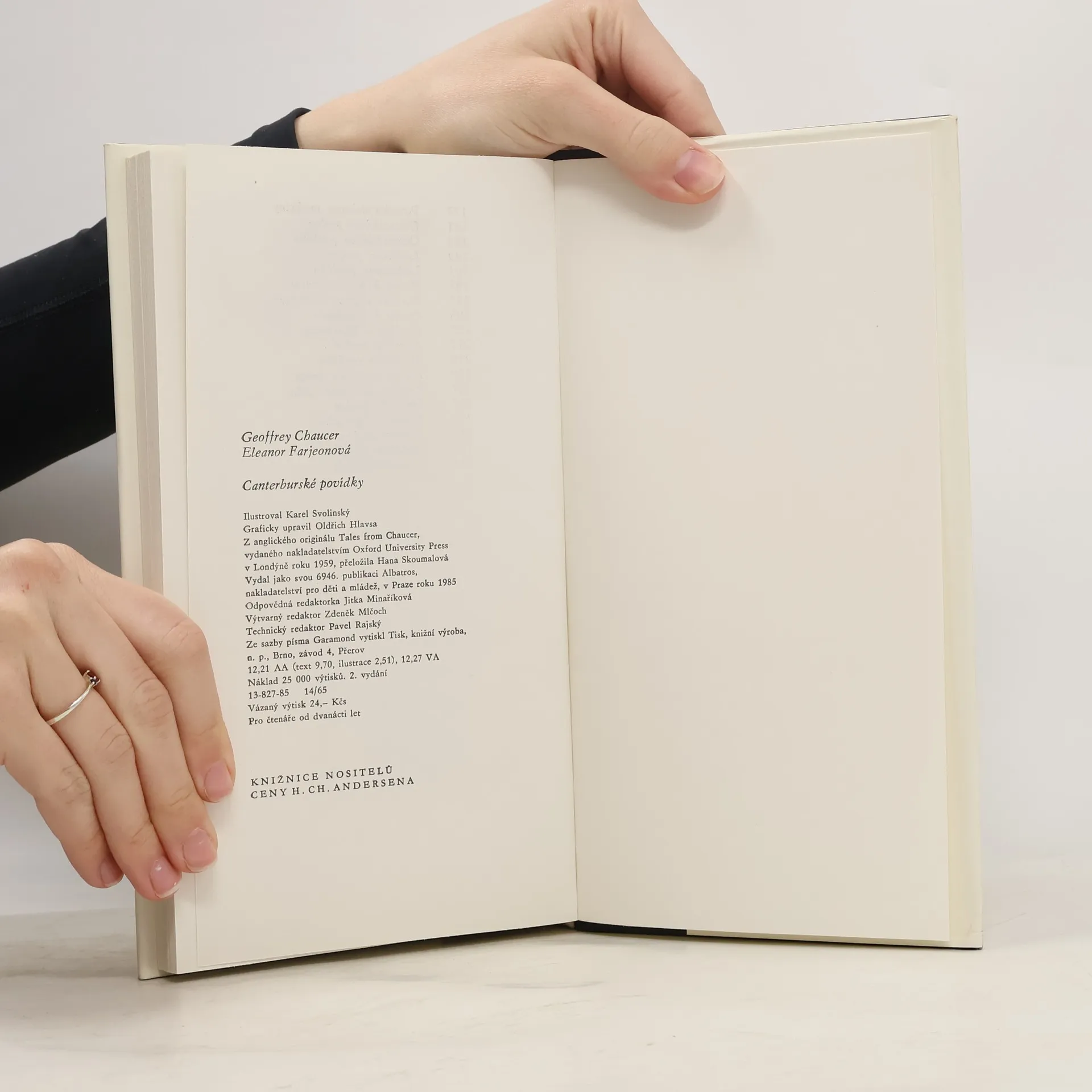 Prozaický přepis Canterburských povídek, patřících k základním dílům nejen anglické, ale i světové literatury, je upraven s ohledem na mladé čtenáře. Při respektování Chaucerova stylu a celkového charakteru díla byly v povídkách některé choulostivější pasáže vypuštěny, jiné upraveny nebo zkráceny. Pro mládež upravila Eleanor Farjeonová. 13-827-85