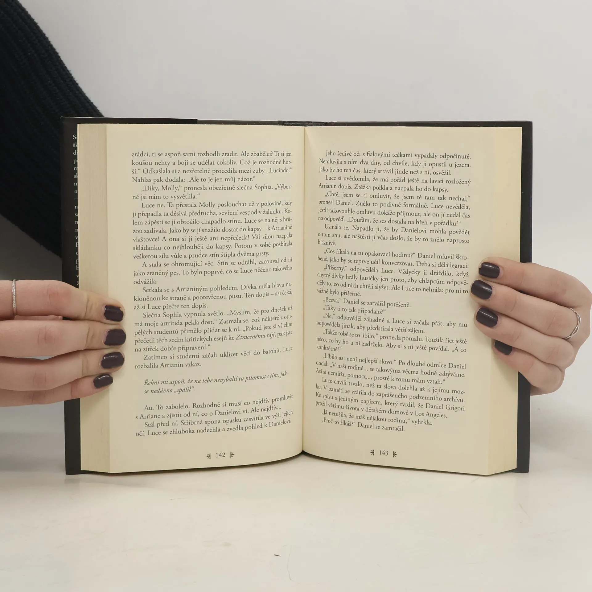 Některým andělům je souzen Pád. Na Danielu Grigorim je něco bolestně povědomého. Ten záhadný, odtažitý chlapec upoutal pozornost Luce Priceové, už když ho viděla poprvé – v první den jejího pobytu v internátní škole pro problémové mladistvé. Ve škole, kde jsou zakázané mobilní telefony, všichni ostatní studenti jsou divní a každý krok sledují bezpečnostní kamery, znamená Daniel pro Luce jediný světlý bod. A přestože on s ní očividně nechce mít nic společného – a dává to jasně najevo –, něco ji k němu přitahuje jako můru plamen svíčky. Luce musí zjistit, co se Daniel tak zoufale snaží utajit... i kdyby ji to mělo zabít.