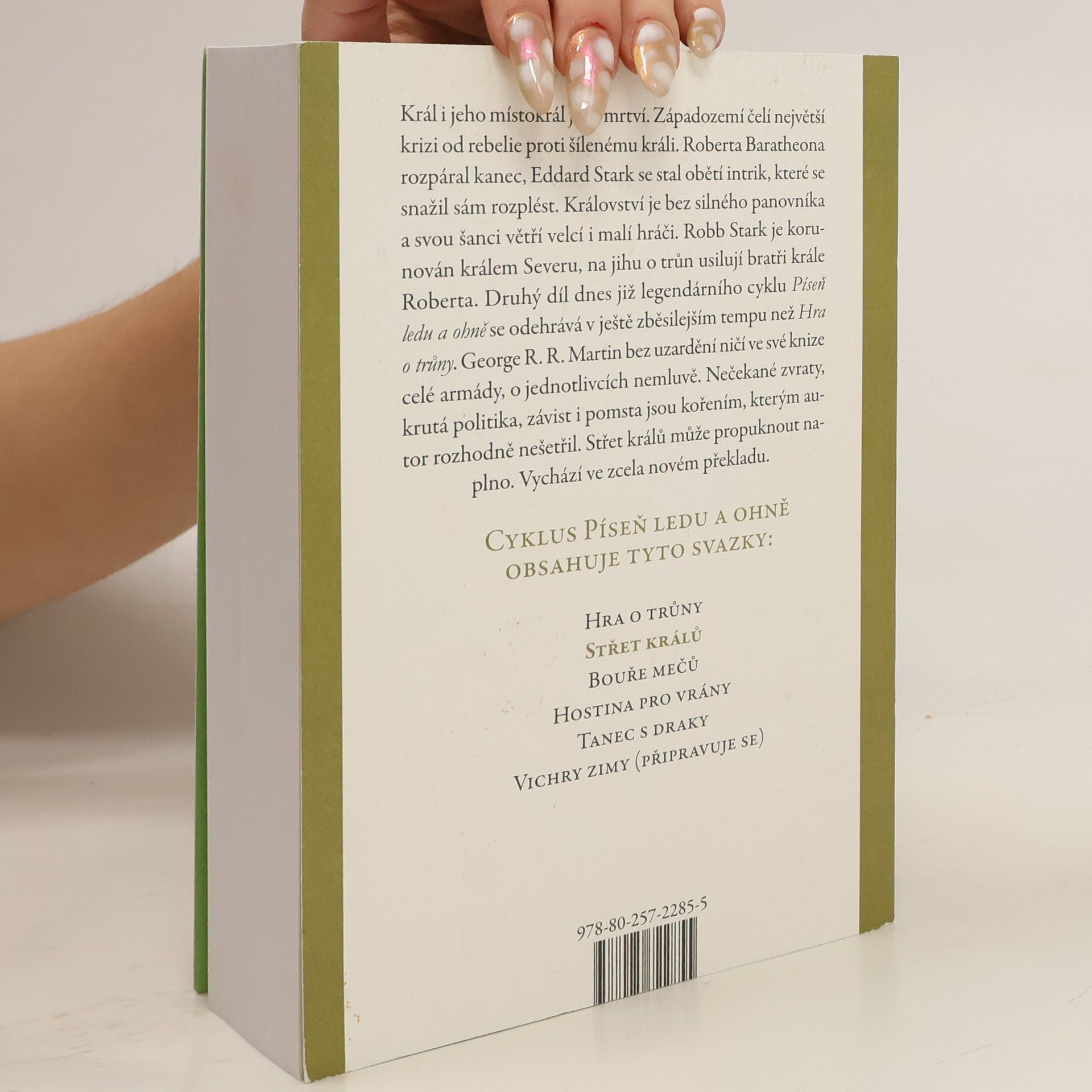 Král i jeho místokrál jsou mrtví. Západozemí čelí největší krizi od rebelie proti šílenému králi. Roberta Baratheona rozpáral kanec, Eddard Stark se stal obětí intrik, které se snažil sám rozplést. Království je bez silného panovníka a svou šanci větří velcí i malí hráči. Robb Stark je korunován králem Severu, na jihu o trůn usilují bratři krále Roberta. Druhý díl dnes již legendárního cyklu Píseň ledu a ohně se odehrává v ještě zběsilejším tempu než Hra o trůny. George R. R. Martin bez uzardění ničí ve své knize celé armády, o jednotlivcích nemluvě. Nečekané zvraty, krutá politika, závist i pomsta jsou kořením, kterým autor rozhodně nešetřil. Střet králů může propuknout naplno. Vychází v novém překladu.