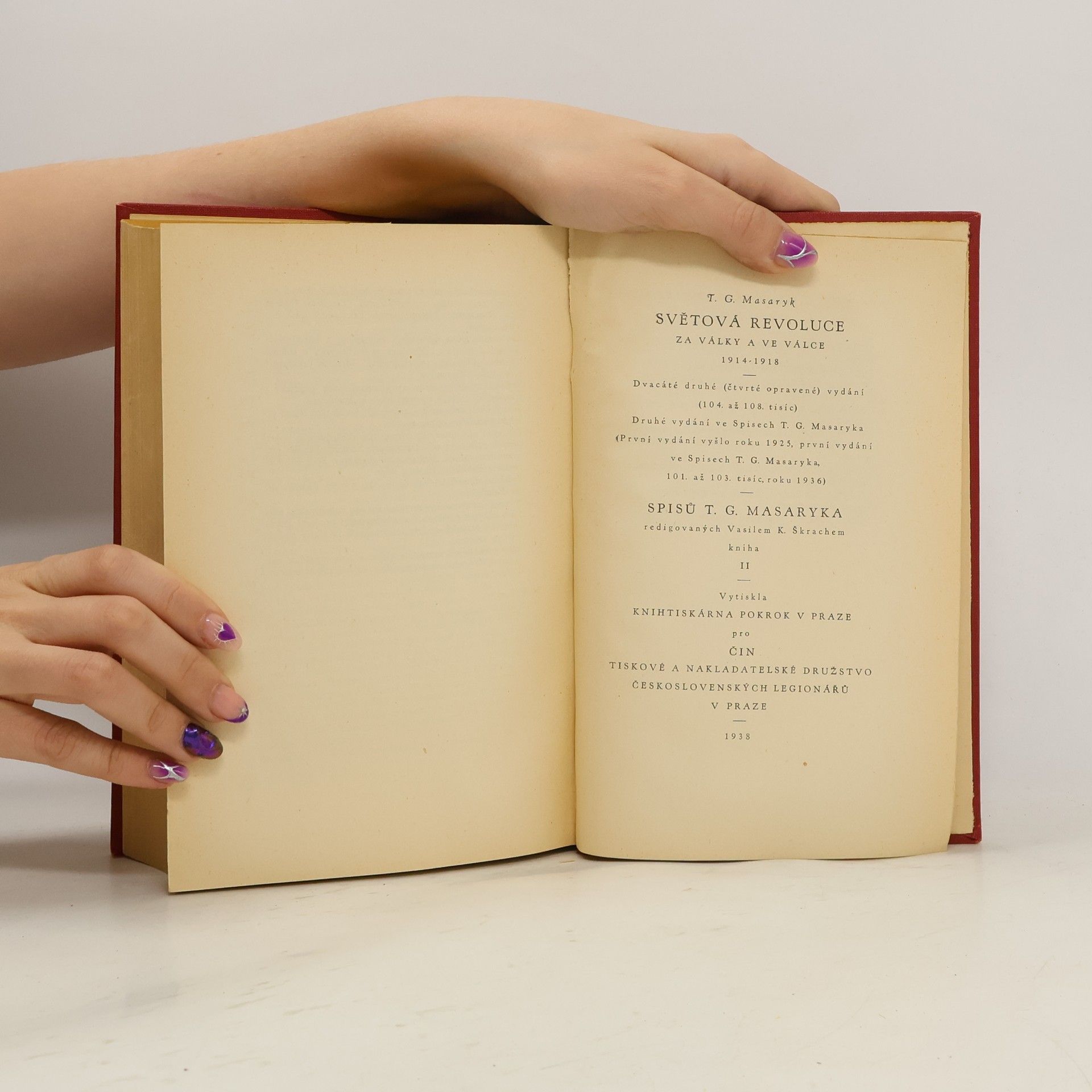Světová revoluce je poslední velkým spisem T. G. Masaryka a v jistém smyslu bilancí jeho celoživotních ideově politických východisek, postojů a snah.