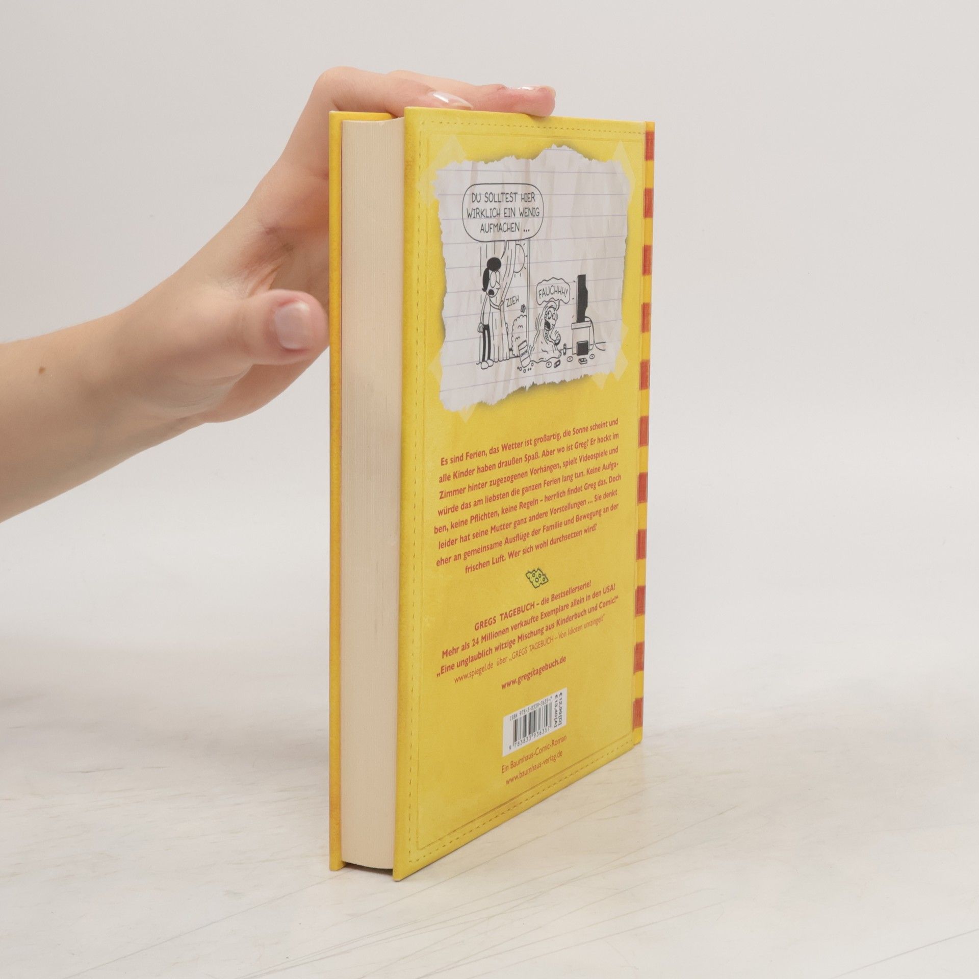 "Es sind Ferien, das Wetter ist großartig, die Sonne scheint und alle Kinder haben draußen Spaß. Aber wo ist Greg? Er hockt im Zimmer hinter zugezogenen Vorhängen, spielt Videospiele und würde das am liebsten die ganzen Ferien lang tun. Keine Aufgaben, keine Pflichten, keine Regeln - herrlich findet Greg das. Doch leider hat seine Mutter ganz andere Vorstellungen ... Sie denkt eher an gemeinsame Ausflüge mit der Familie und Bewegung an der frischen Luft. Wer sich wohl durchsetzen wird?" (Verlagsangabe)