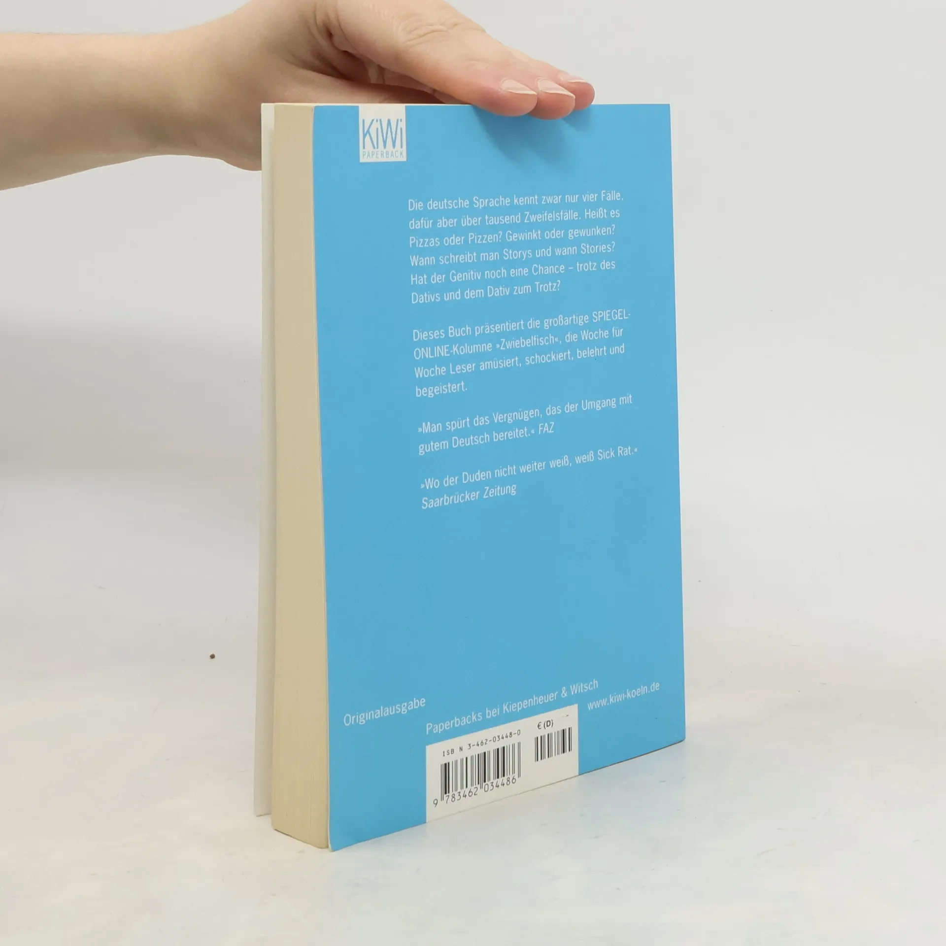 Die erfolgreiche Spiegel-Online-Kolumne Zwiebelfisch - als Buch über eine Million verkaufte Exemplare! Die oder das Nutella – diese Frage hat schon viele Gemüter am Frühstückstisch bewegt. Der, die, das – wieso, weshalb, warum? Ob Nutella nun weiblich oder sächlich ist, ist sicherlich keine Frage auf Leben und Tod, aber eine Antwort hätten wir schon gern. Wir? Ja, wir hilflos Verlorenen im Labyrinth der deutschen Sprache. Wir, die wir unsere liebe Not mit der deutschen Sprache haben. Und leichter, verständlicher oder zumindest nachvollziehbarer ist es nach der Rechtschreibreform auch nicht geworden. In seinen hinreißend komischen und immer klugen Kolumnen bringt Bastian Sick Licht ins Dunkel der deutschen Sprachregelungen und sortiert den Sprachmüll. Ist der inflationären Verwendung von Bindestrichen noch Einhalt zu gebieten, angesichts von Spar-Plänen und Quoten-Druck? Versinken wir sprachlich gesehen nicht längst im Hagel der Apostrophe, wenn Känguru’s plötzlich in den Weiten Australien’s leben? Derlei Unsinn scheint nicht mehr aufhaltbar, wenn es nicht dieses Buch gäbe. Darauf zwei Espressis!