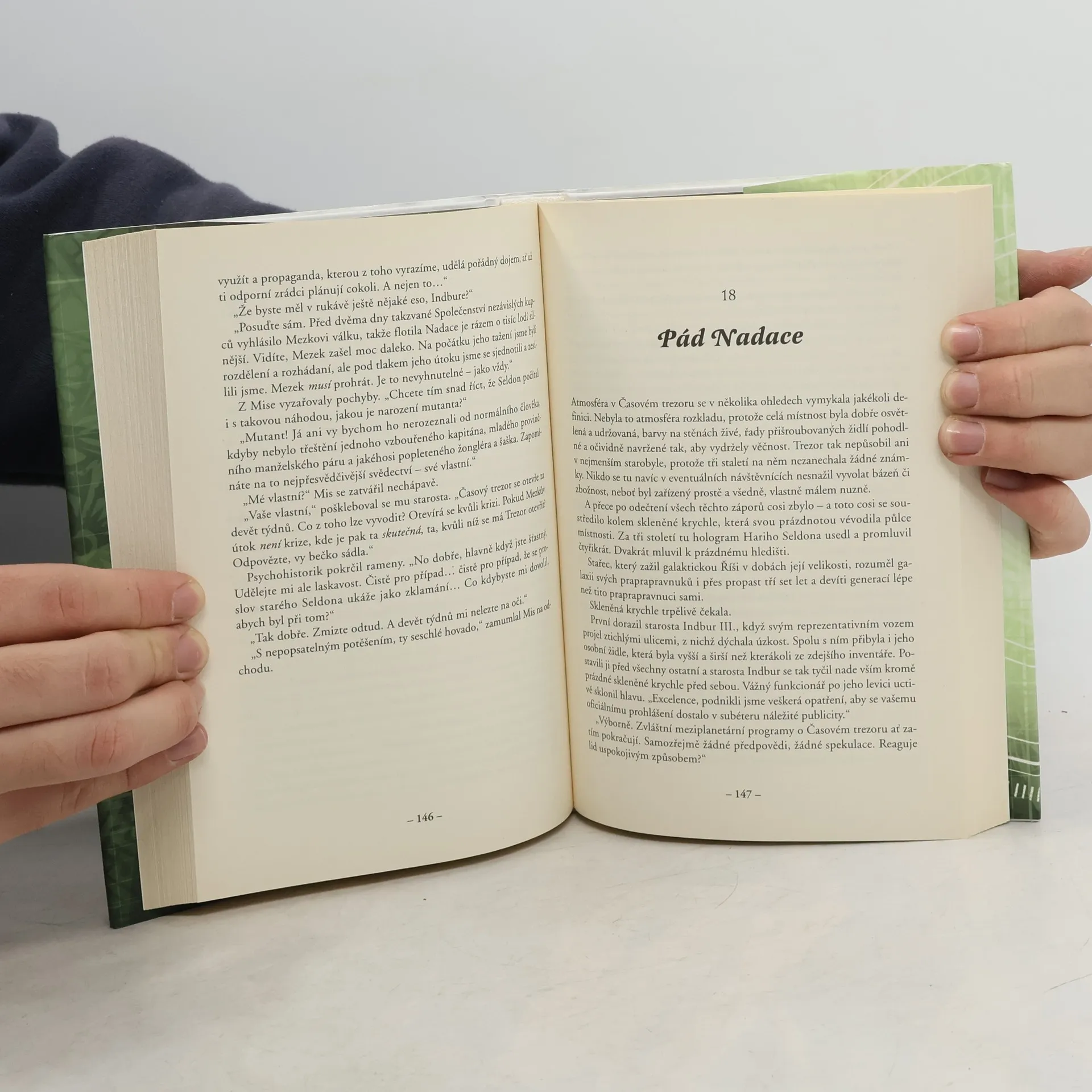 Druhá kniha série Nadace. Proroctví Hariho Seldona se naplnilo. Nastal Pád. Kdysi mohutná galaktická Říše se rozpadla; jejím troskám teď vládne poslední císař Kleon II. Nadace však důsledně plní Seldonův původní plán – co nejvíce zkrátit období třiceti tisíc let předpokládaného období temna – a úspěšně překonává další krize. Na scénu však vstupuje činitel, s nímž nepočítal ani geniální psychohistorik: mutant s naprosto nepředvídatelnými biologickými vlastnostmi.