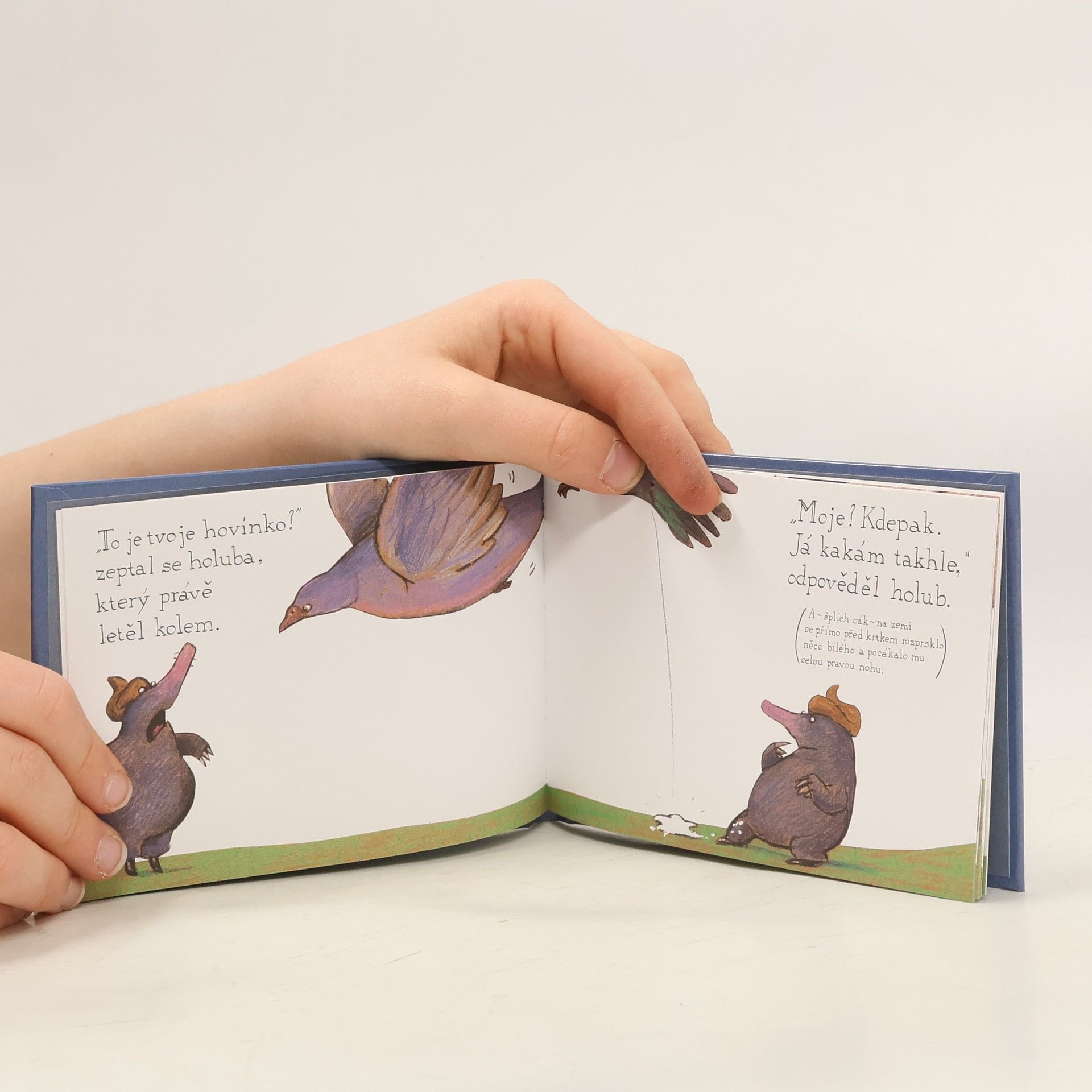 Dnes už kultovní knížka, kterou ocení lidé s nadhledem a smyslem pro humor. Vypráví o zvídavém krtkovi, jenž putuje od zvířátka ke zvířátku a zjišťuje, komu patří ta nevábně páchnoucí kupička na jeho hlavě. Osobitě vtipná knížka s půvabnými ilustracemi je určena malým i velkým milovníkům nekorektní legrace.