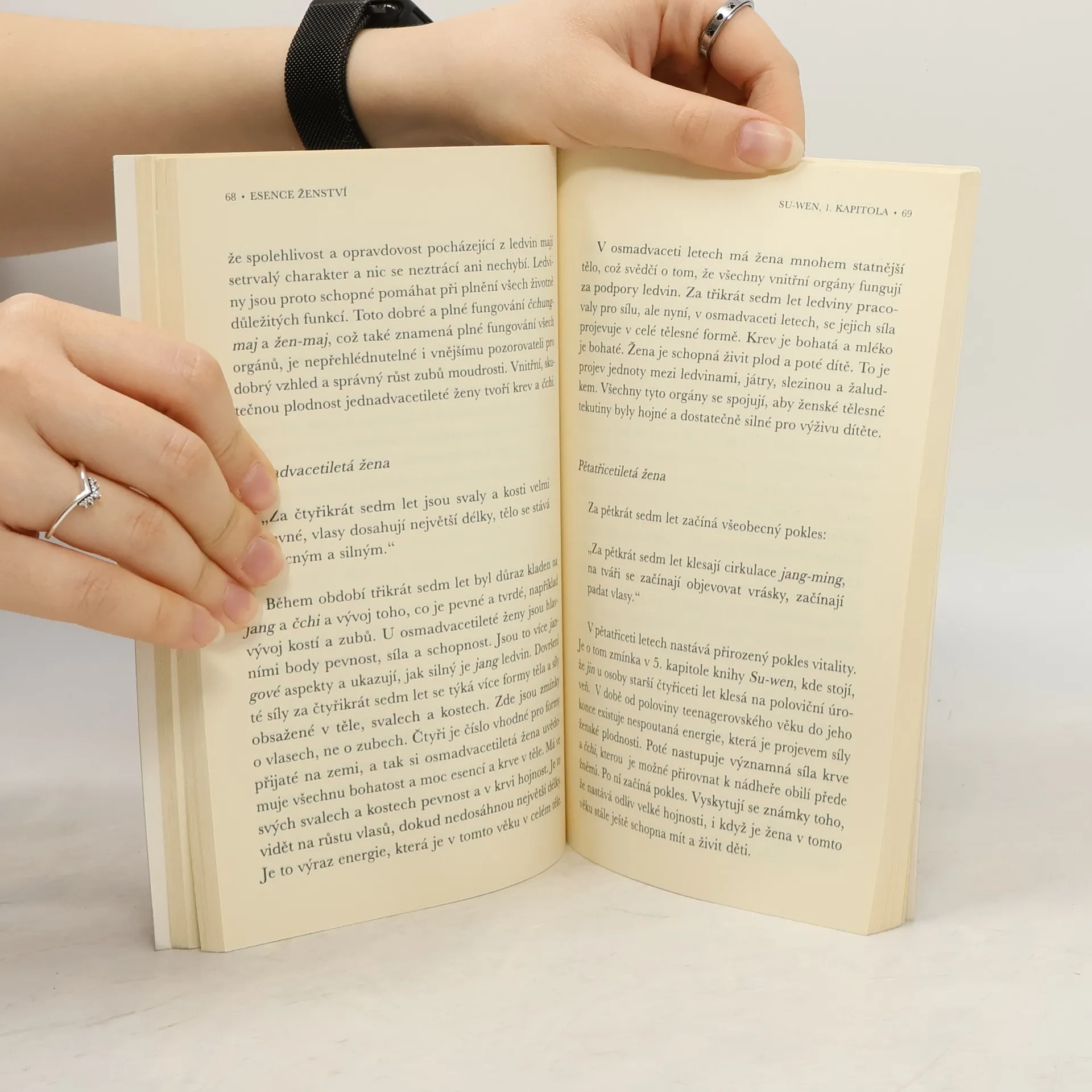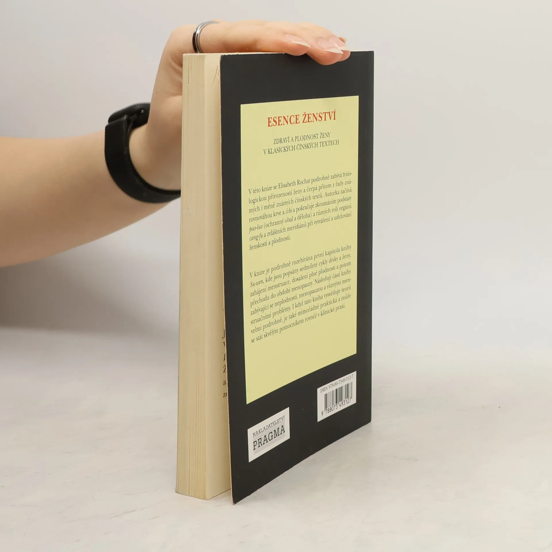 Zdraví a plodnost ženy v klasických čínských textech V této knize se Elisabeth Rochat podrobně zabývá fyziologickou přirozeností ženy a čerpá přitom z řady známých i méně známých čínských textů. Autorka začíná rovnováhou krve a čchi a pokračuje zkoumáním podstaty pao-luo (ochranný obal a děloha) a různých rolí orgánů cang-fu a zvláštních meridiánů při vytváření a udržování ženskosti a plodnosti. V knize je podrobně rozebírána první kapitola knihy Su-wen, kde jsou popsány sedmileté cykly dívky a ženy, zahájení menstruace, dosažení plné plodnosti a potom přechodu do období menopauzy. Následují části knihy zabývající se neplodností, menopauzou a různými menstruačními problémy. I když tato kniha vysvětluje teorii velmi podrobně, je také mimořádně praktická a může se stát skvělým pomocníkem rovněž v klinické praxi.