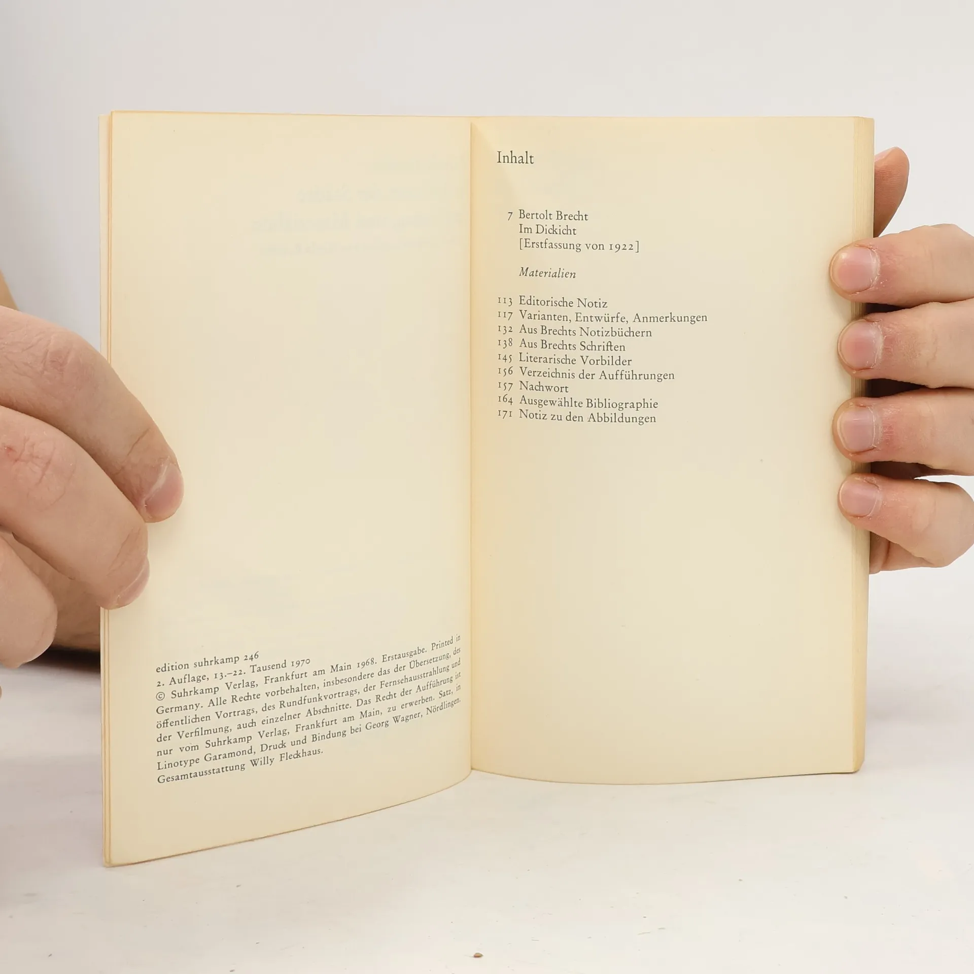Im Dickicht der Städte Erstfassung und Materialien, Bertolt Brecht