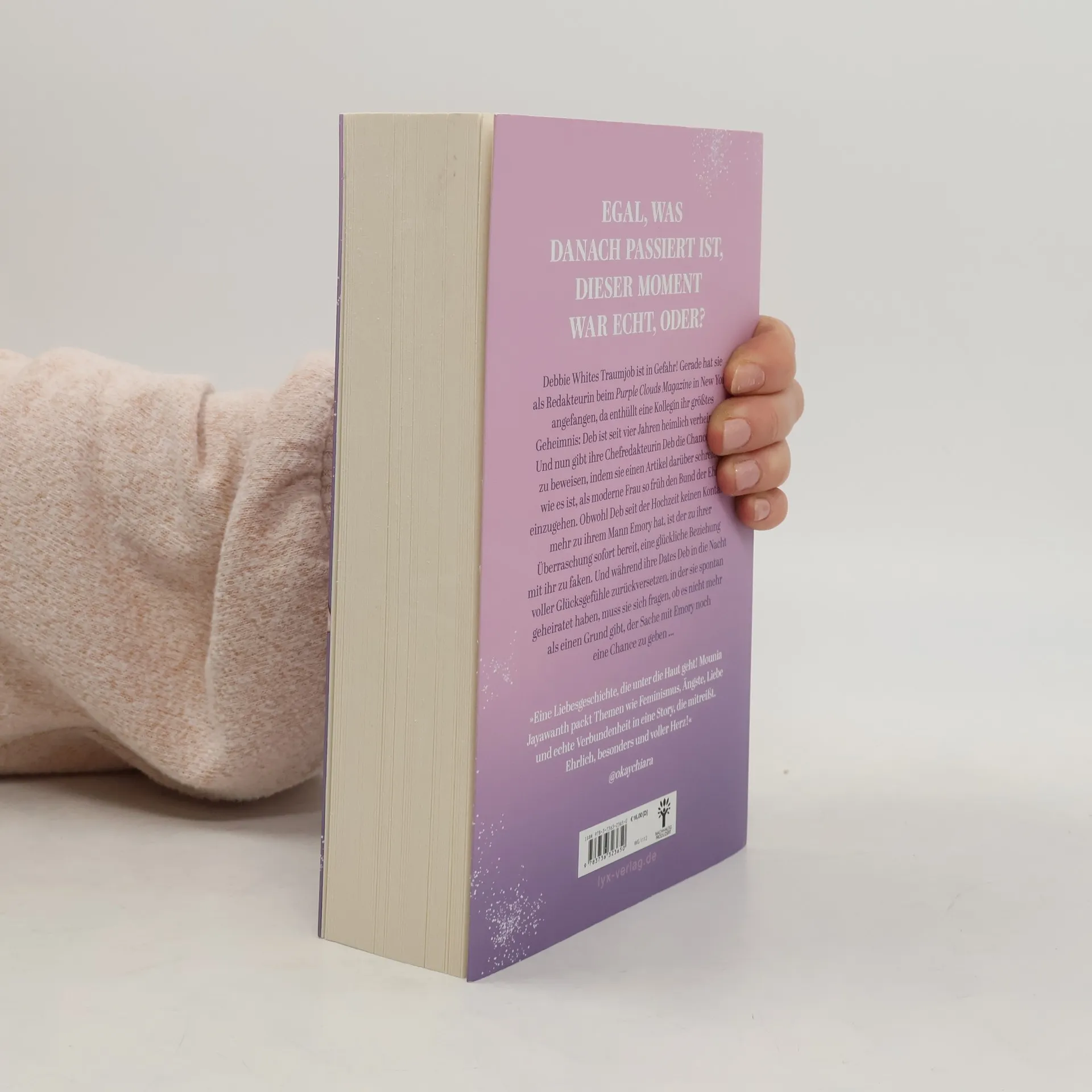 Große Gefühle in der Redaktion des PURPLE-CLOUDS-Magazins Debbie White hat eine Stelle in der Redaktion des angesagten Purple Clouds Magazin in New York ergattert. Aber schon in der ersten Woche wird ihr klar, dass sie sich dort beweisen muss, denn ihre Chefredakteurin hat von Debs größtem Geheimnis erfahren: Sie ist seit vier Jahren verheiratet. Und nun soll sie einen Artikel darüber schreiben, wie es ist, als moderne Frau so früh den Bund der Ehe einzugehen. Kein Problem - hätte Deb nicht seit der Hochzeit keinen Kontakt mehr zu ihrem Mann Emory. Doch wenn sie an die Nacht voller Glücksgefühle zurückdenkt, in der sie spontan geheiratet haben, fragt Deb sich, ob es nicht mehr als einen Grund gibt, der Sache mit Emory noch eine Chance zu geben ... Auftakt der neuen New-Adult-Trilogie von Mounia Jayawanth Dieses Buch gibt es in zwei Versionen: mit und ohne Motiv-Farbschnitt. Sobald die Farbschnitt-Ausgabe ausverkauft ist, liefern wir die Ausgabe ohne Farbschnitt aus.