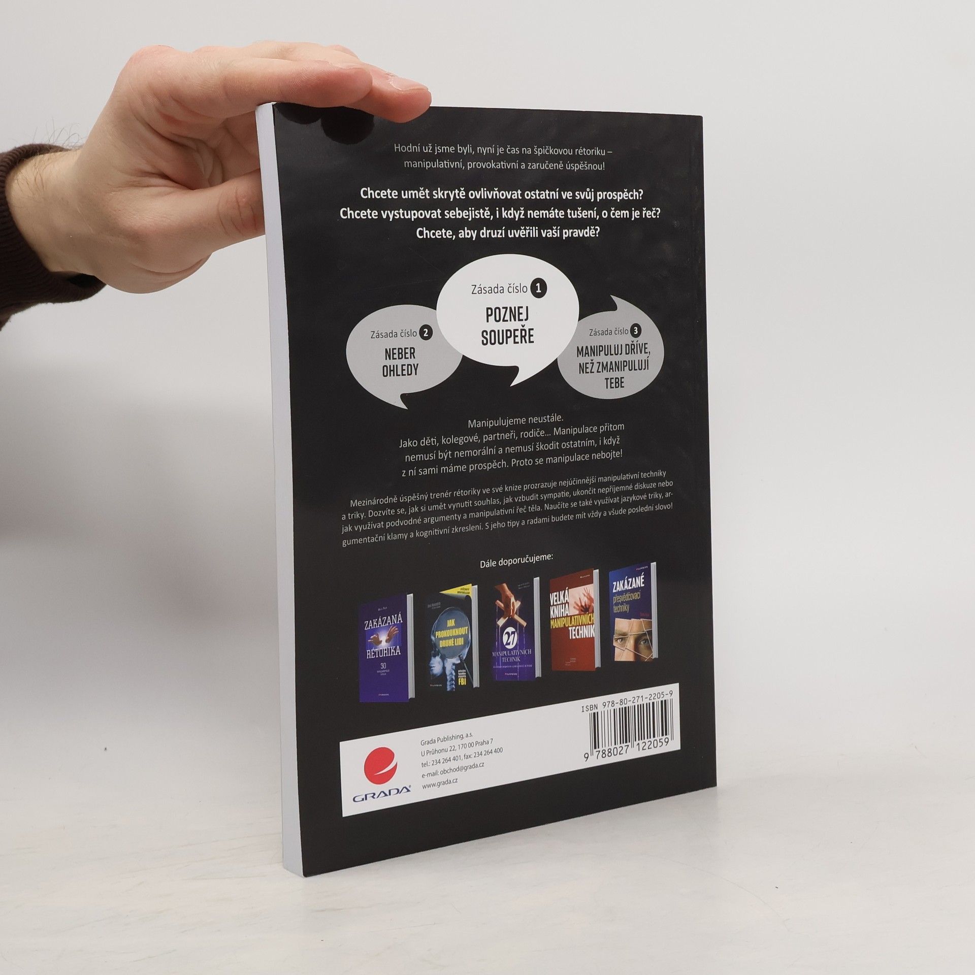 Mezinárodně úspěšný trenér rétoriky ve své knize prozrazuje nejúčinnější manipulativní techniky a triky. Dozvíte se, jak si umět vynutit souhlas, jak vzbudit sympatie, ukončit nepříjemné diskuze nebo jak využívat podvodné argumenty a manipulativní řeč těla. Naučíte se také využívat jazykové triky, argumentační klamy a kognitivní zkreslení. S jeho tipy a radami budete mít vždy a všude poslední slovo!