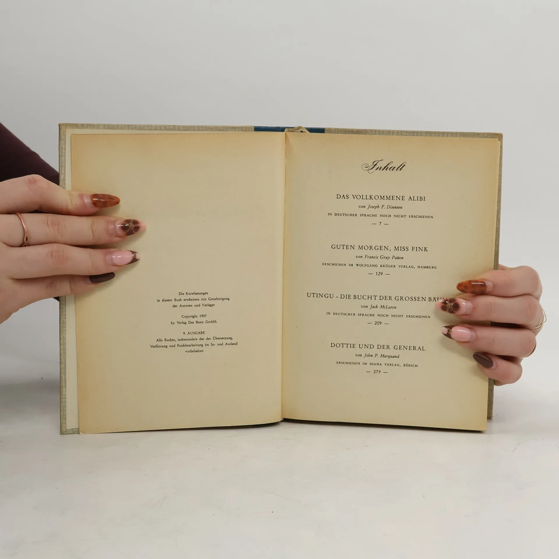 Reader´s Digest Auswahlbücher. Guten Morgen Miss Fink. Das Vollkommene Alibi. Utingu die Farm der grossen Baume. Dottie und der General, Collectif d'auteurs