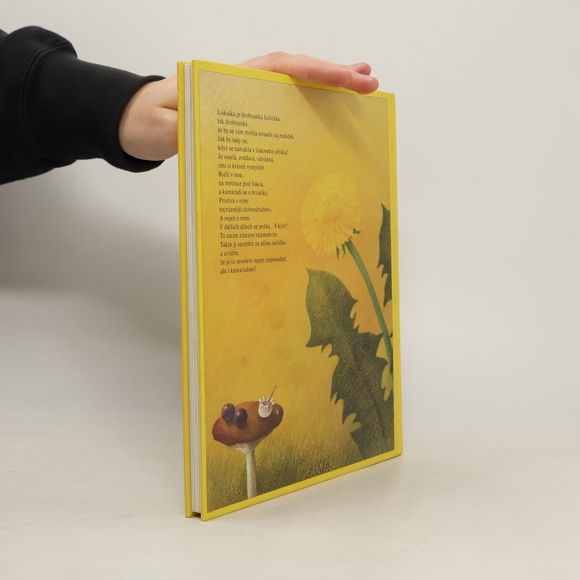 Jednoho slunečního rána se v lese objevila drobounká holčička. Vypadá úplně jako človíček, jenže na hlavičce má dvě tykadla. Protože se narodila z lískového oříšku, sama si dala jméno Lískulka. Je veselá, neposedná, odvážná, dovede si krásně vymýšlet. A především je moc zvědavá. Chce všechno vidět, všude strčí nosík, ke všemu se připlete. Svět je tu přece od toho, aby se bavila! Bydlí v oříškovém domečku a kamarádí se s broučky. Spolu prožívají příběhy veselé, ale i napínavé.
