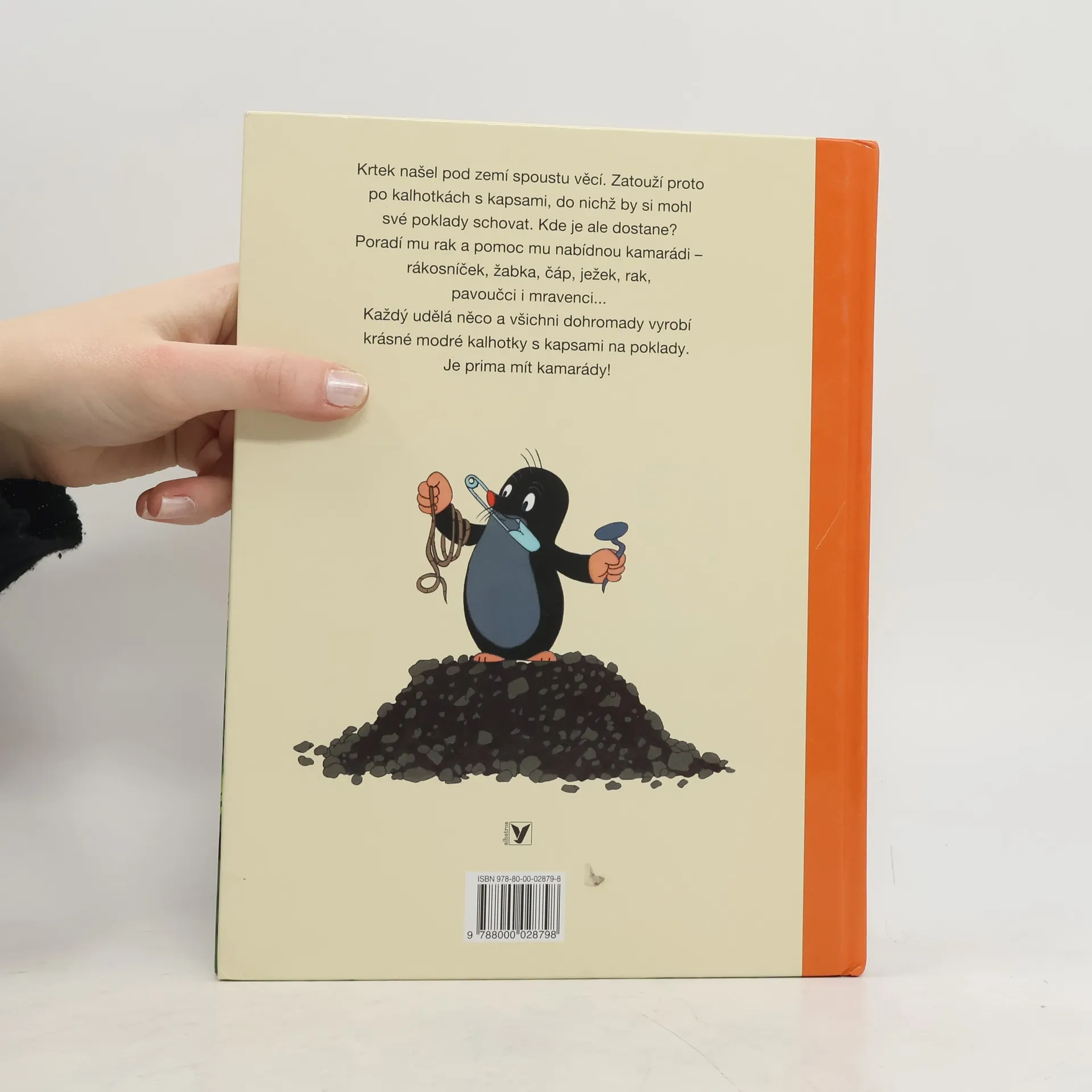 Jedna z nejznámějších a nejpůvabnějších knížek o tom, jak se dílo podaří, když se všichni spojí a každý dělá, co umí. Krtek zatouží po krásných modrých kalhotkách, sám ale neumí ani tkát, ani stříhat, šít nebo barvit látku. Poprosí tedy o pomoc své kamarády - raka, rákosníčka, žabku, čápa, ježka, pavoučky a mravenečky. Ti mu rádi pomohou, a Krtek se nakonec může radovat z nových kalhotek s velkými kapsami, kam může schovat své malé poklady