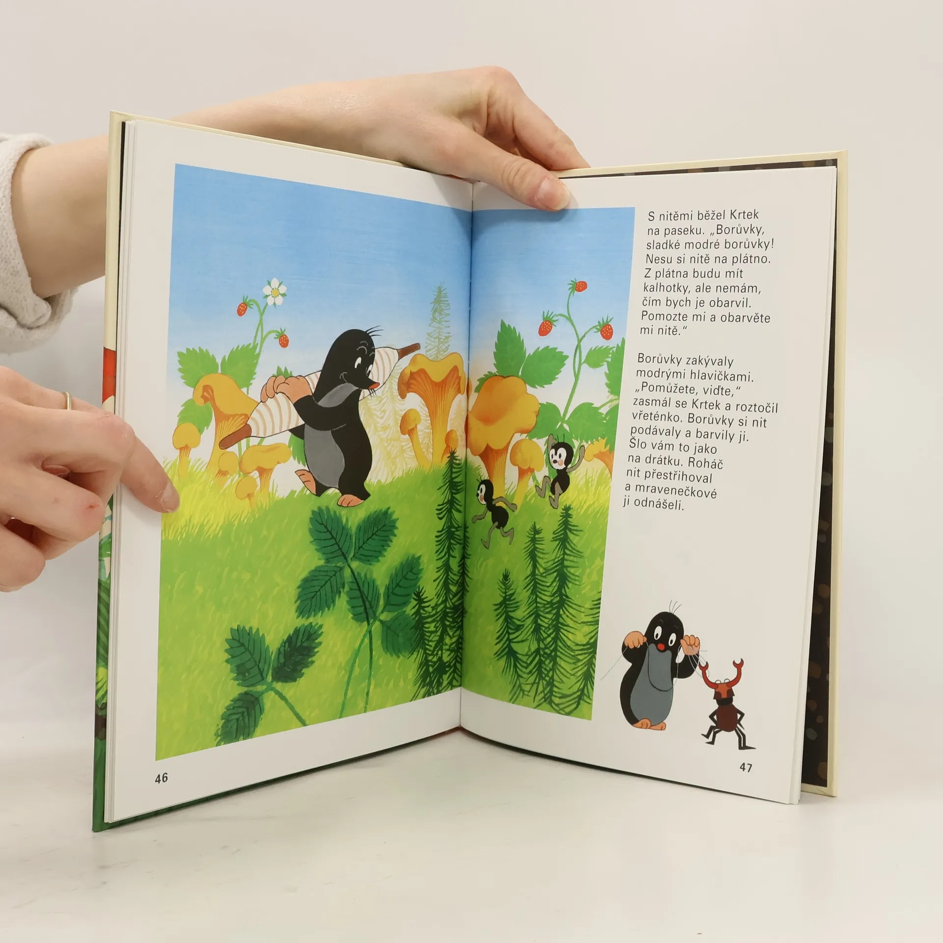 Jedna z nejznámějších a nejpůvabnějších knížek o tom, jak se dílo podaří, když se všichni spojí a každý dělá, co umí. Krtek zatouží po krásných modrých kalhotkách, sám ale neumí ani tkát, ani stříhat, šít nebo barvit látku. Poprosí tedy o pomoc své kamarády - raka, rákosníčka, žabku, čápa, ježka, pavoučky a mravenečky. Ti mu rádi pomohou, a Krtek se nakonec může radovat z nových kalhotek s velkými kapsami, kam může schovat své malé poklady