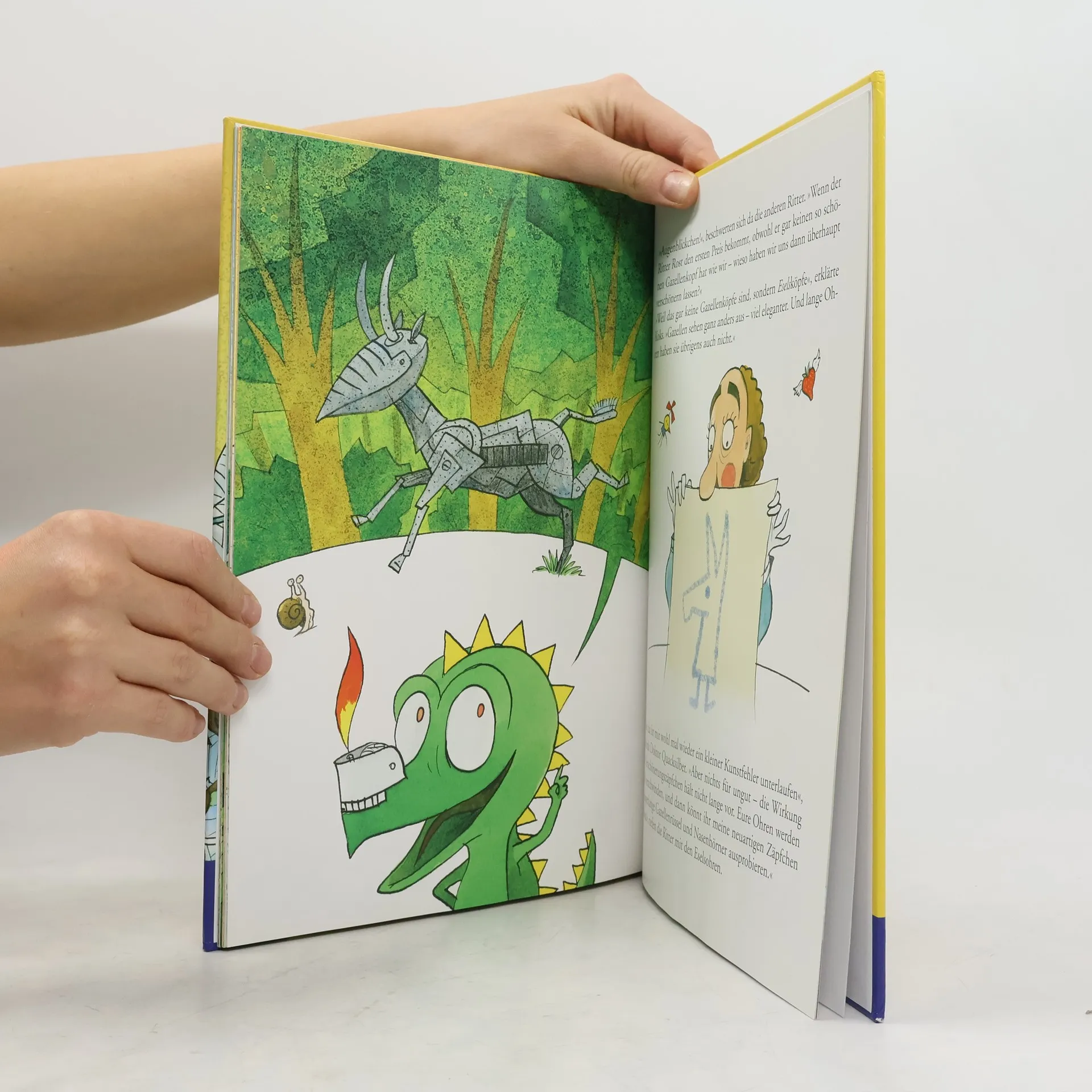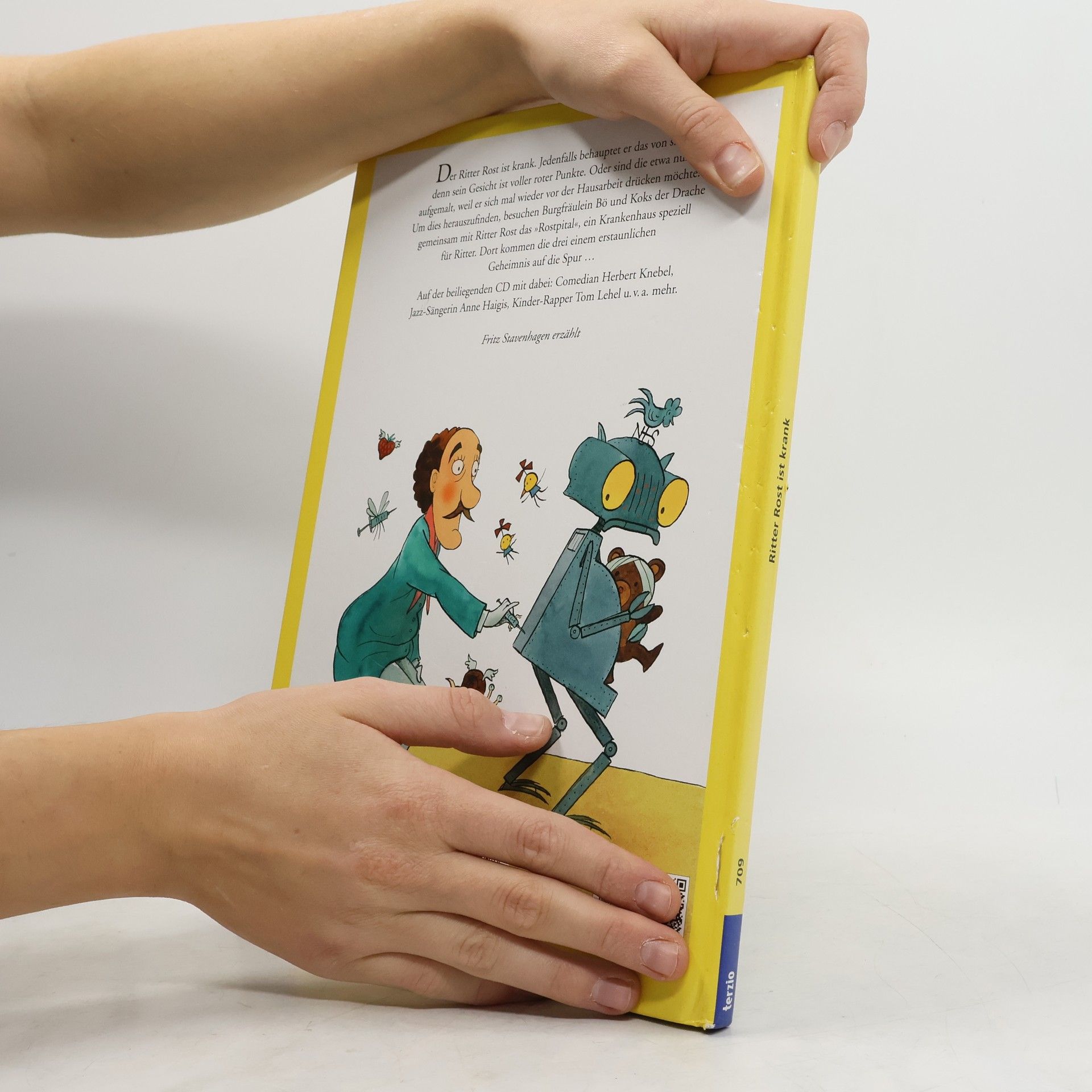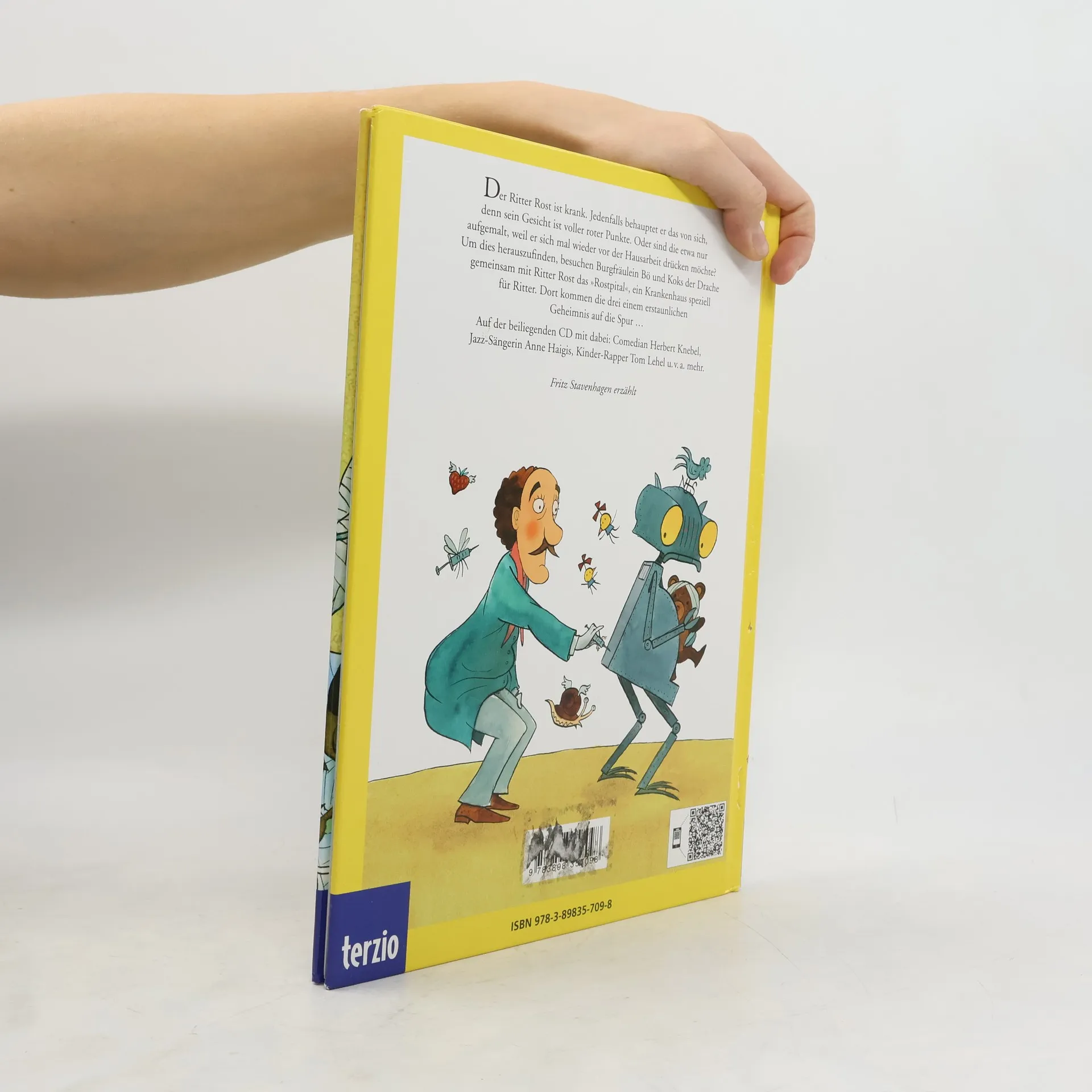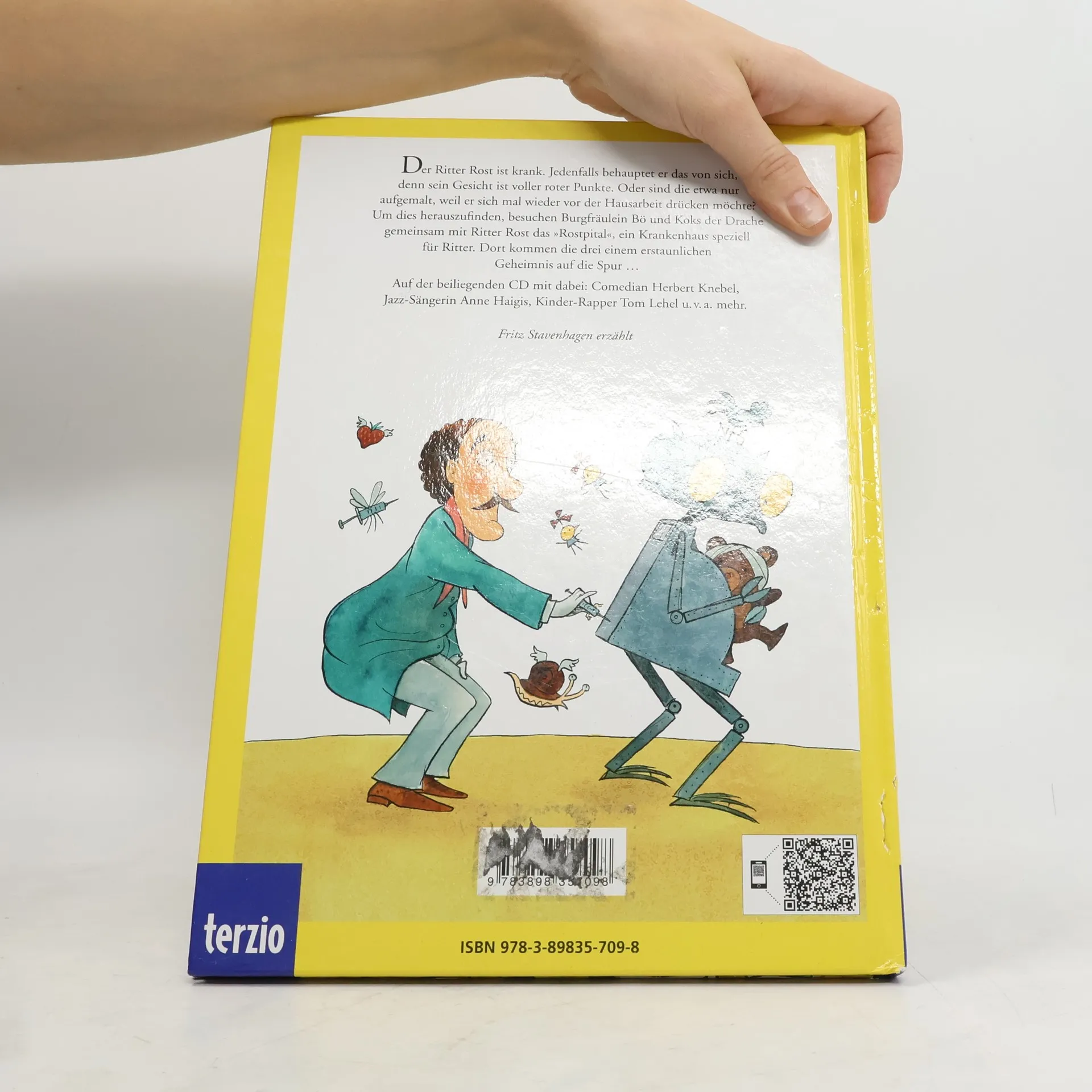 Patient Ritter Rost: Ritter Rost fühlt sich krank. Sein Gesicht ist übersät mit roten Punkten. Das kann sich nur um das pfeifende Dosenfieber handeln, jammert er. Diese Krankheit überfällt einem nur, wenn man im Haushalt mithelfen soll. Aber sowohl das Burgfräulein Bö wie auch der Hausdrache Koks zweifeln an dem bösartigen Leiden. Trotzdem bringen sie ihn ins Rostspital. Unterwegs fällt Ritter Rost ein Plakat auf, das einen Schönheitswettbewerb ankündigt. Daran will er unbedingt teilnehmen. In der Klinik realisiert Doktor Quacksilber im Nu, dass die roten Flecken bloss aufgemalt sind. Nichts desto trotz verabreicht er ihm eine Spritze sowie ein Verschönerungszäpfchen. Doch was haben diese Mumien hier verloren? Sie sehen alle wie bandagierte Esel aus! Ein spannendes Geheimnis wird gelüftet! Ein unglaublich fantasievolles Buch über simuliertes Kranksein und Gesundwerden. Auf der beiliegenden CD sind der ganze Text sowie alle hinreissenden elf Songs dieses Buches zu hören. Die mit viel instrumentaler Vielfalt geprägten musikalischen Variationen lassen leise Erinnerungen an einstige Beatlessongs aufflammen. Ab 5 Jahren, *****, Silvia Zanetti