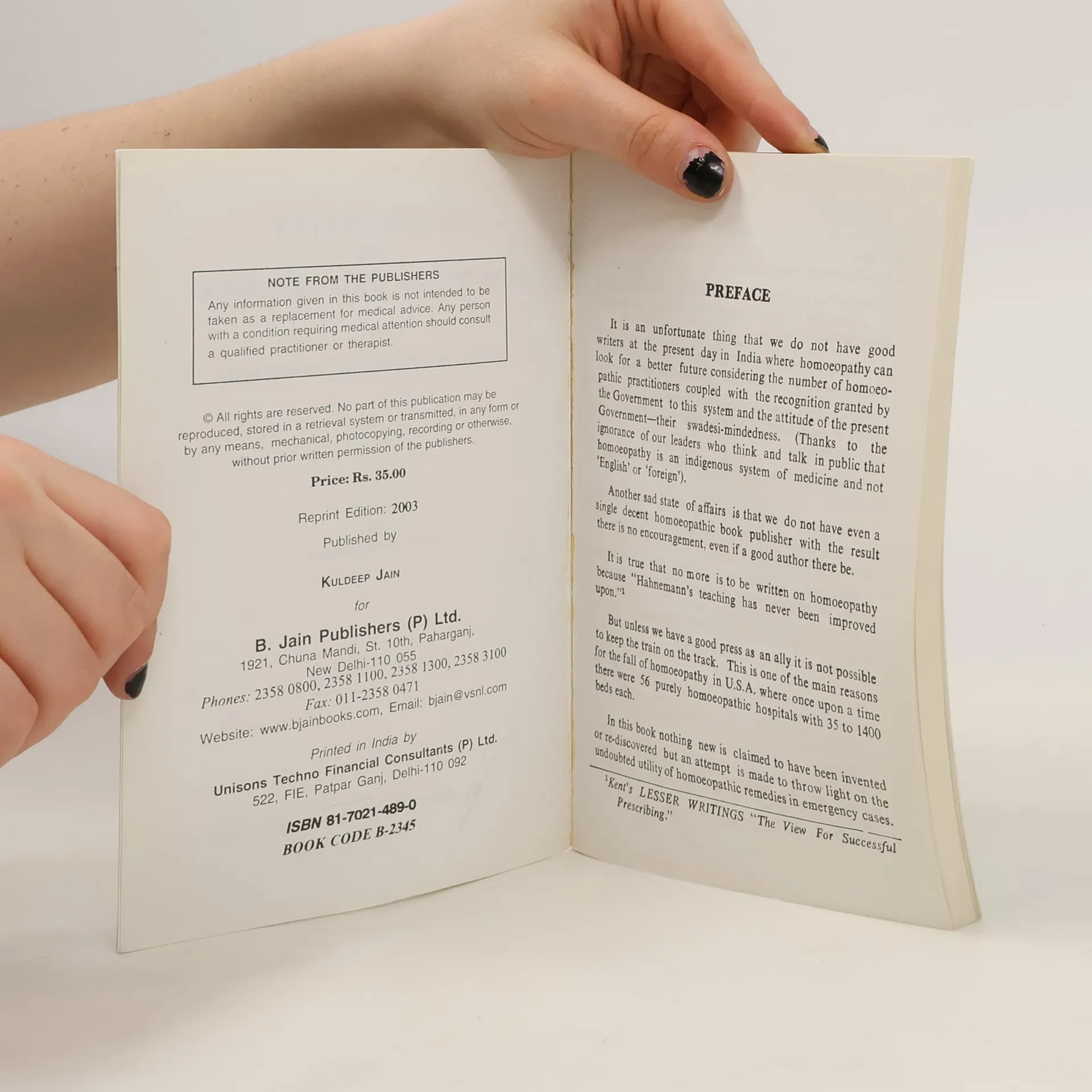 In this book nothing new is claimed to have been invented or rediscovered but an attempt is made to throw light on the undoubted utility of homoeopathic remedies in energency cases.