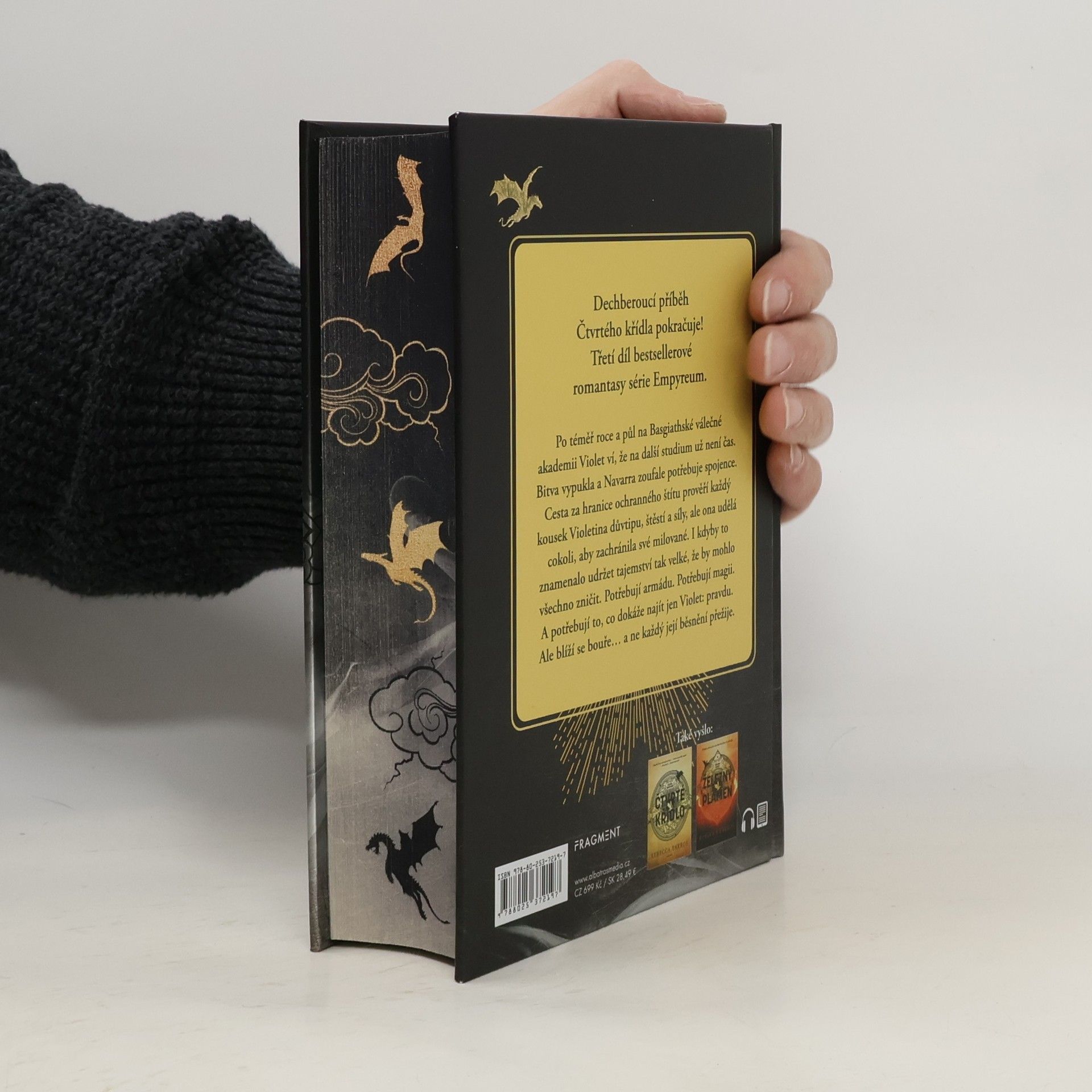 Dechberoucí příběh Čtvrtého křídla pokračuje! Třetí díl bestsellerové romantasy série Empyreum. Po téměř roce a půl na Basgiathské válečné akademii Violet ví, že na další studium už není čas. Bitva vypukla a Navarra zoufale potřebuje spojence. Cesta za hranice ochranného štítu prověří každý kousek Violetina důvtipu, štěstí a síly, ale ona udělá cokoli, aby zachránila své milované. I kdyby to znamenalo udržet tajemství tak velké, že by mohlo všechno zničit. Potřebují armádu. Potřebují magii. A potřebují to, co dokáže najít jen Violet: pravdu. Ale blíží se bouře… a ne každý její běsnění přežije.