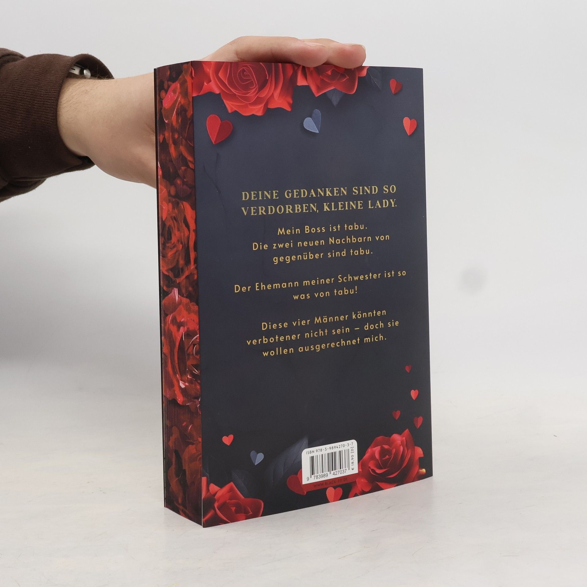 +++ Aufwendig gestaltete Ausgabe mit Farbschnitt +++ Mein Boss ist tabu. Die zwei neuen Nachbarn von gegenüber sind tabu. Der Ehemann meiner Schwester ist so was von tabu! Diese vier Männer könnten verbotener nicht sein – doch sie wollen ausgerechnet mich. Vier Männer, die nicht nur unerreichbar sind, sondern auch verbotener kaum sein könnten. Doch sie haben ein Geheimnis und somit nur eines im Sinn: mich. Sie sind es, die mich jegliche Prinzipien vergessen lassen, und ich möchte im Gegenzug nur eines von ihnen: meine moralischen Grenzen ein für alle Mal hinter mir lassen. Ich werde ihnen verfallen – auf jede erdenkliche Weise. Happy Valentine's Day to me!