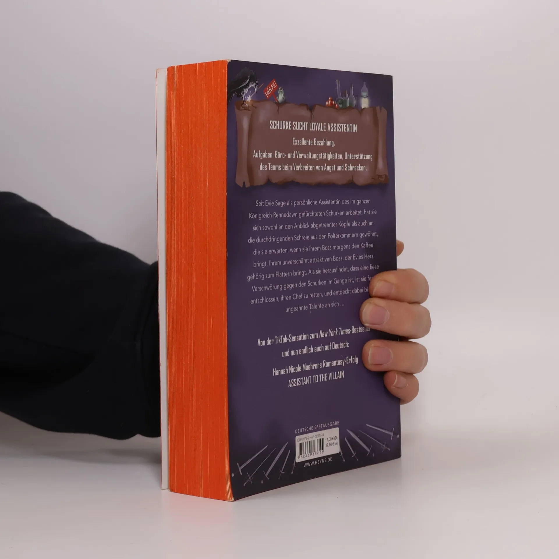 Mit farbig gestaltetem Buchschnitt – nur in limitierter Erstauflage der gedruckten Ausgabe (Lieferung je nach Verfügbarkeit) Gefürchteter Schurke sucht loyale, unerschütterliche Assistentin. Aufgaben: Büro- und Verwaltungstätigkeiten sowie Unterstützung des Teams beim Verbreiten von Angst und Schrecken. Exzellente Bezahlung. Seit fünf Monaten arbeitet Evie Sage nun schon als persönliche Assistentin des im ganzen Königreich Rennedawn gefürchteten Schurken. Inzwischen hat sie sich sowohl an den Anblick abgetrennter Köpfe als auch an die durchdringenden Schreie aus den Folterkammern gewöhnt, die sie erwarten, wenn sie ihrem Boss morgens den Kaffee bringt. Ihrem unverschämt attraktiven Boss, der Evies Herz jedes Mal ein wenig zum Flattern bringt, wenn sie ihm im Büro begegnet. Als sie herausfindet, dass eine Verschwörung gegen den Schurken im Gange ist, ist sie fest entschlossen, ihren Chef zu retten, und entdeckt dabei bisher ungeahnte Talente an sich …