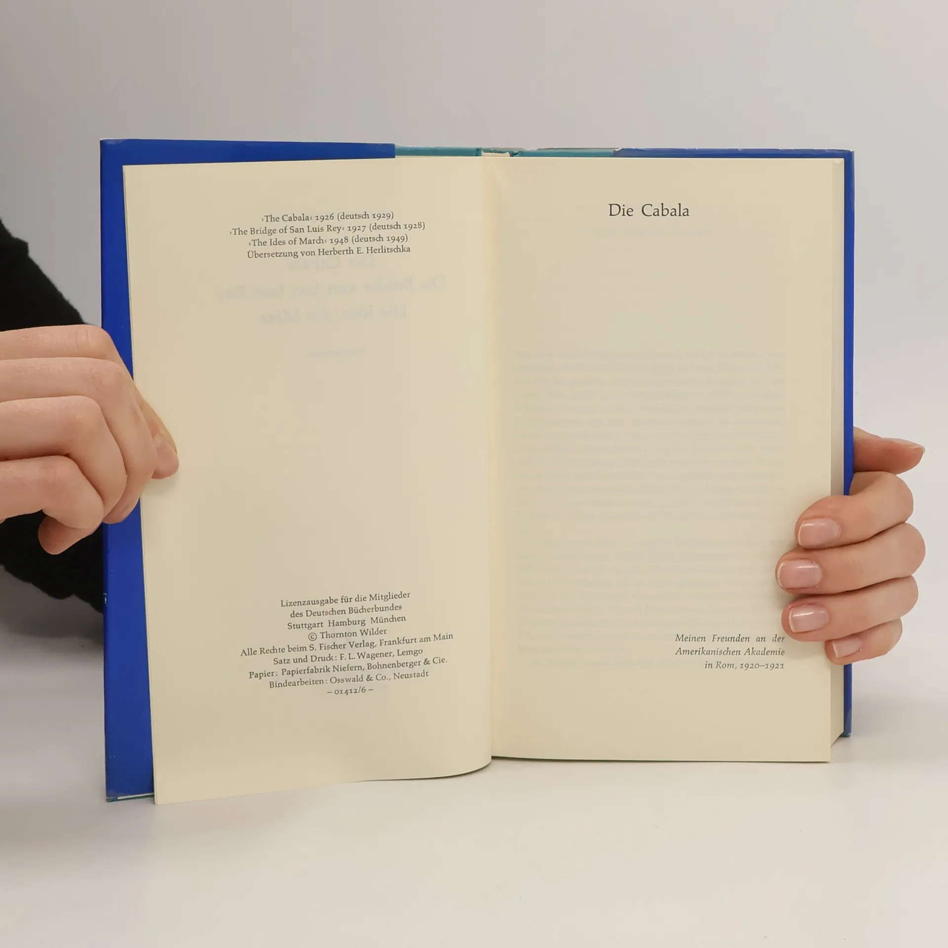 Die Cabala. Die Brücke von San Luis Rey. Die Iden des März, Thornton Wilder