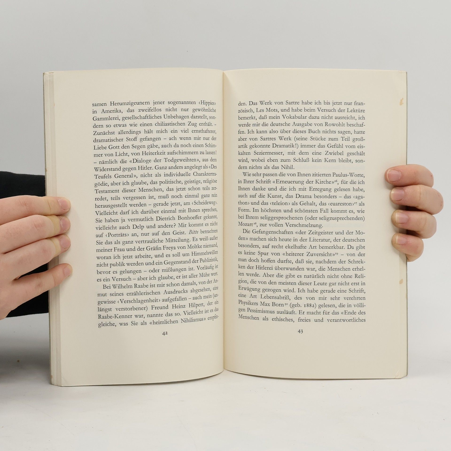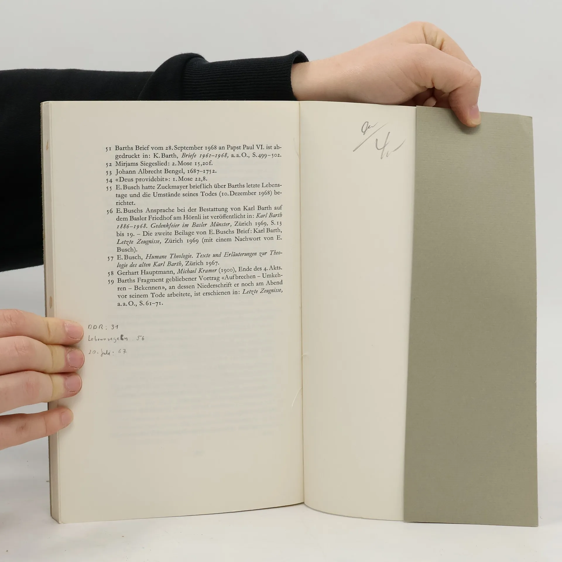Für die Freunde Karl Barths war es eine kleine Sensation, als sie um die Monatswende Mai/Juni 1968 in dem vervielfältigten Dankbrief an die Gratulanten zu seinem 82. Geburtstag – dem letzten, den er erlebte – die folgenden Sätze lasen: «Mir ist im hohen Alter noch eine sehr merkwürdige neue Freundschaft zuteil geworden mit dem Dichter Carl Zuckmayer nämlich, den ich im vorigen Sommer, knapp bevor ich wieder auf die Nase fiel, in Saas-Fee aufsuchte und mit dem ich dann in eine muntere Korrespondenz geriet. Ganz neulich ist er (anläßlich der Basler Premiere von ‚Des Teufels General‘) auch ausgiebig bei mir gewesen, und es schien ihm zwischen meinen starrenden Bücherwänden leidlich wohl zu sein. Er ist ein Mensch. Und er hat viele ganz ernste und viele ganz heitere Möglichkeiten.» (aus dem Vorwort von Hinrich Stoevesandt)