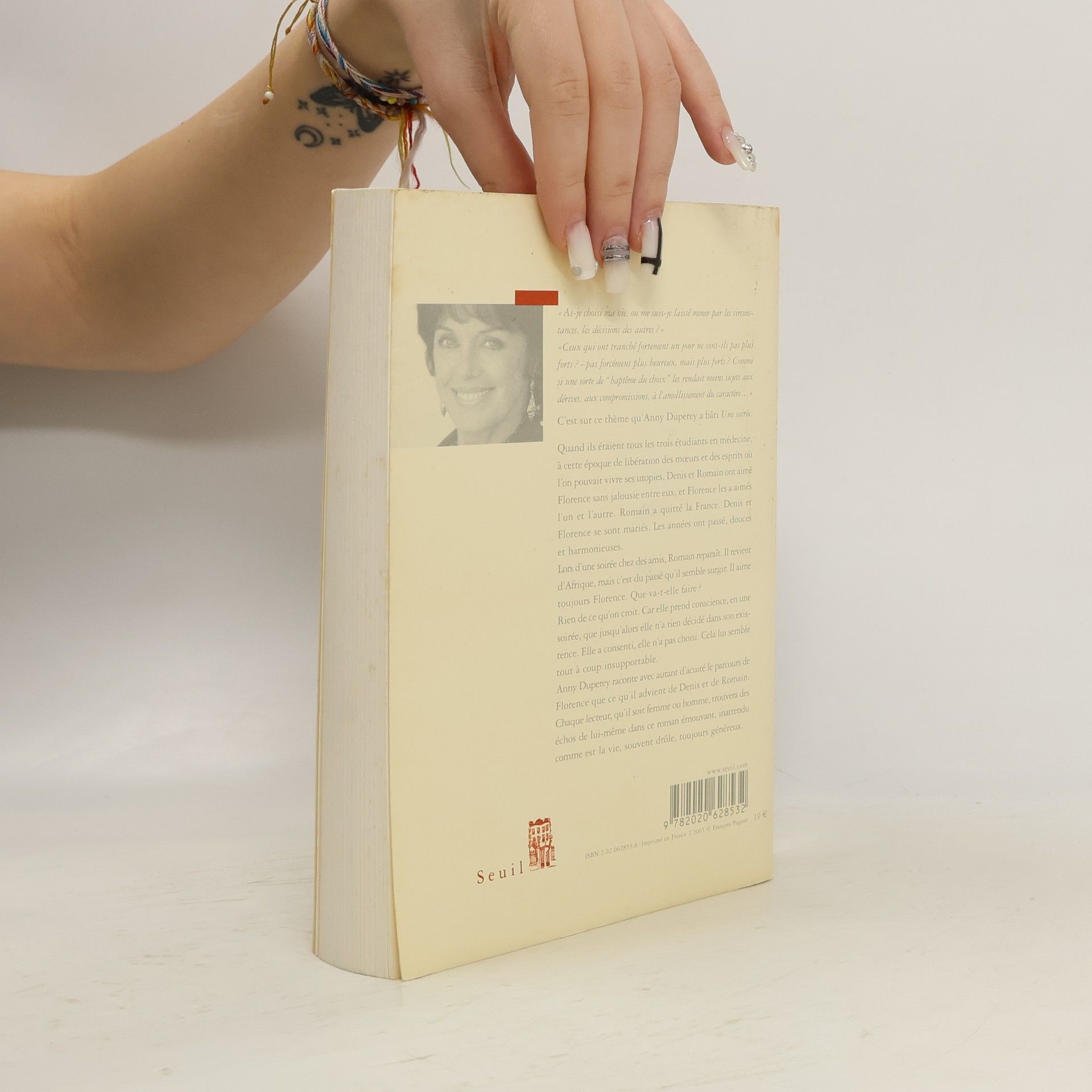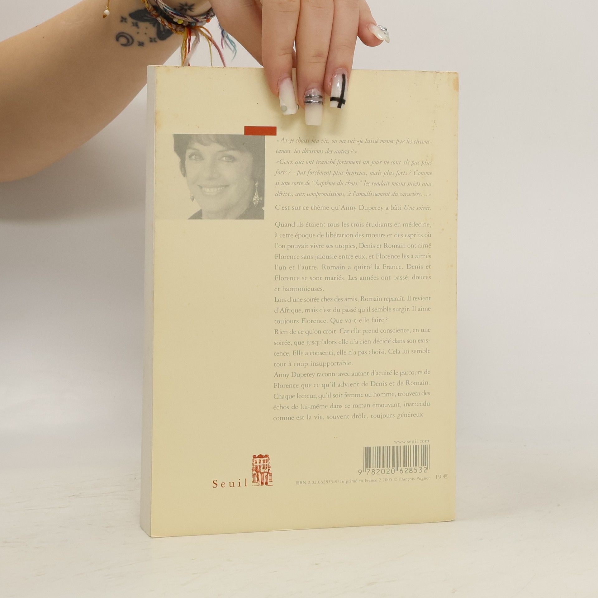 C'est sur ce thème qu'Anny Duperey a bâti Une soirée.Quand ils étaient tous les trois étudiants en médecine, à cette époque de libération des moeurs et des esprits où l'on pouvait vivre ses utopies, Denis et Romain ont aimé Florence sans jalousie entre eux, et Florence les a aimés l'un et l'autre. Romain a quitté la France. Denis et Florence se sont mariés. Les années ont passé, douces et harmonieuses.Lors d'une soirée chez des amis, Romain reparaît. Il revient d'Afrique, mais c'est du passé qu'il semble surgir. Il aime toujours Florence. Que va-t-elle faire ?Rien de ce qu'on croit. Car elle prend conscience, en une soirée, que jusqu'alors elle n'a rien décidé dans son existence. Elle a consenti, elle n'a pas choisi. Cela lui semble tout à coup insupportable.Anny Duperey raconte avec autant d'acuité le parcours de Florence que ce qu'il advient de Denis et de Romain. Chaque lecteur, qu'il soit femme ou homme, trouvera des échos de lui-même dans ce roman émouvant, inattendu comme est la vie, souvent drôle, toujours généreux.