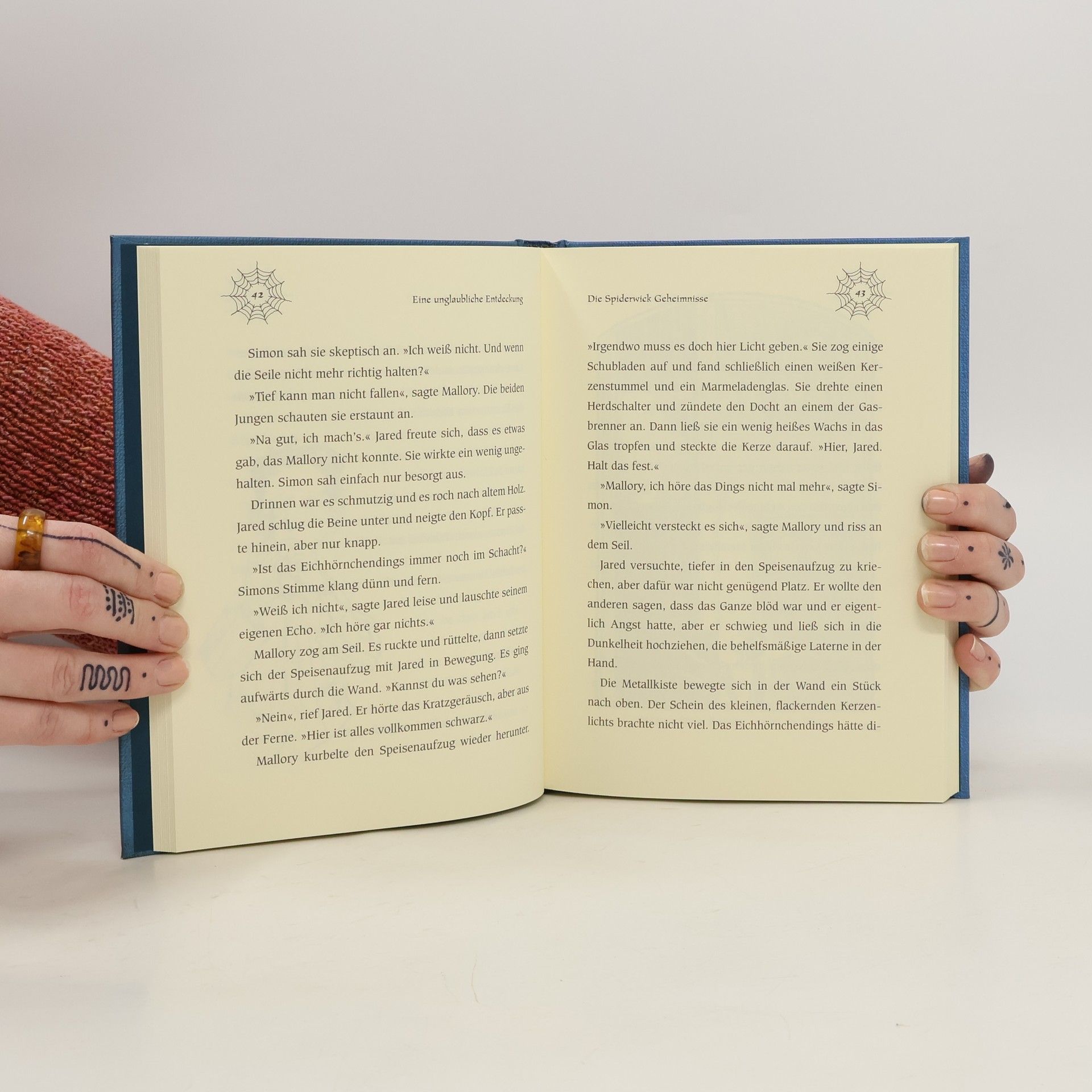 Ein altes, verfallenes Haus einer ungeliebten Tante –- das ist das neue Zuhause der Zwillinge Jared und Simon, ihrer Schwester Mallory und ihrer Mutter. Jared ist überhaupt nicht scharf darauf, dort zu wohnen. Aber Jareds Eltern sind geschieden, und sie können nirgendwo anders unterkommen. Doch das Haus von Tante Lucinda birgt viele Geheimnisse, wie die Kinder schnell feststellen: Da gibt es merkwürdige Geräusche in den Wänden, ein Nest mit einer Kakerlaken-Girlande –- und einen Aufzug, der in ein verborgenes Zimmer führt. In diesem Zimmer findet Jared Hinweise auf eine andere Welt, in der sich Elfen, Kobolde und Gnome tummeln. Und bald schon bekommen die Kinder die Anwesenheit dieser Wesen hautnah zu spüren: Mallorys Haare werden an ihr Bett geknotet, und Jared trifft einen leibhaftigen Irrwicht. Außerdem findet er “Arthur Spiderwicks Handbuch für die fantastische Welt um dich herum”, und damit geht das Abenteuer erst so richtig los. In diesem ersten Teil der Geschichte um Jared, seine Geschwister und die fantastische Welt der Elfen und Kobolde werden die Grundlagen gelegt für die Abenteuer, die die drei Kinder in den Folgebänden erleben werden. In vielerlei Hinsicht wird hier eine klassische Fantasygeschichte erzählt, doch manches daran ist ungewöhnlich: Die Kinder leben keineswegs in einer heilen Märchenwelt, sondern leiden unter der Scheidung ihrer Eltern und haben ihre Fehler und Macken.