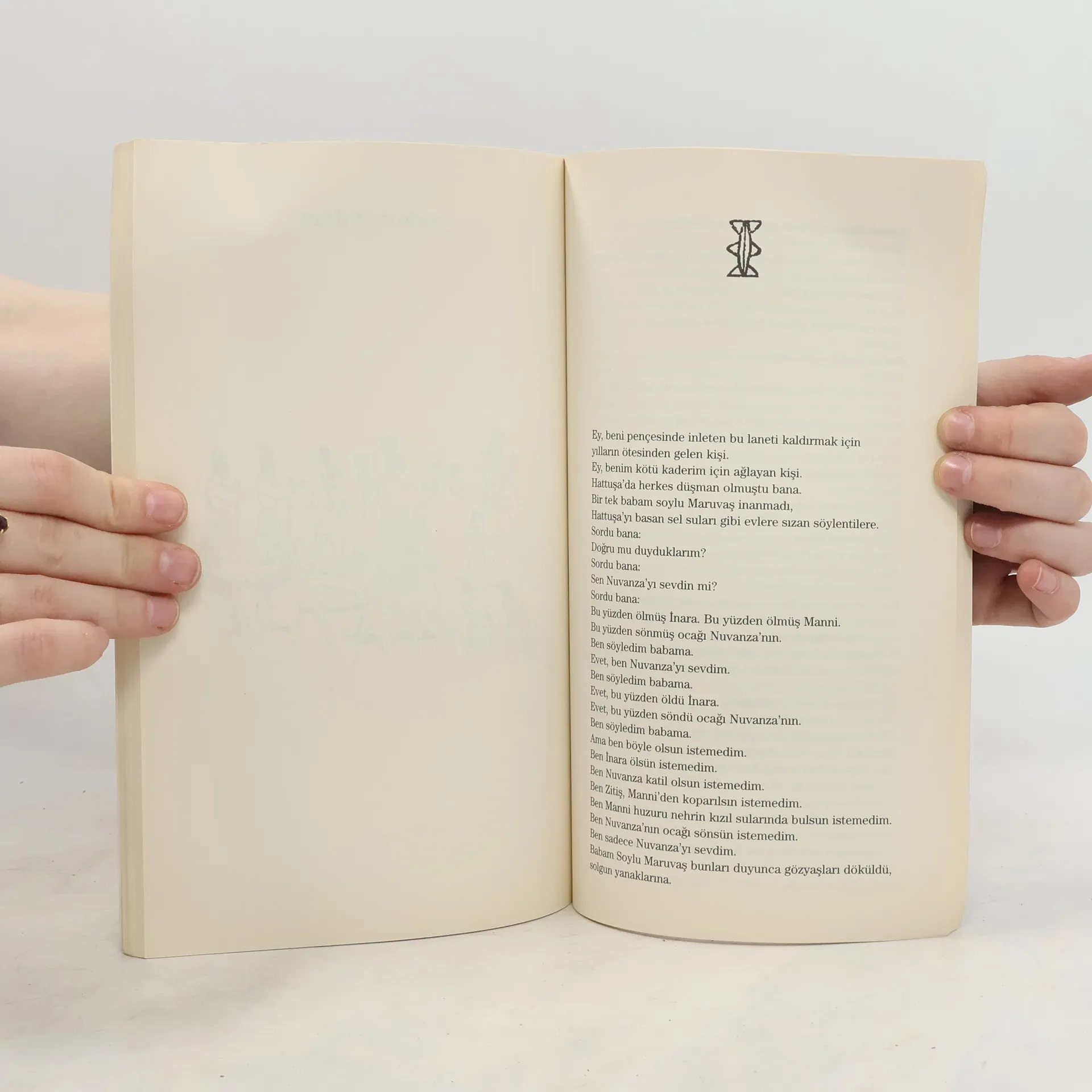 Anadolu'nun kalbinde yeryüzünün ilk büyük imparatorluğu: Hititler... Açgözlü kralların toprak hırsı. Kanla yazılan bir tarih. Yeryüzünün ilk büyük savaşı Kadeş. Umarsız bir sevda. Aşkını günah gibi yaşayan genç bir kadın. Tanrıların lanetlediği insanlar. Uğradığı lanetin bedelini savaşla ödeyen bir adam. Acımasız bir dünyada, aşkın derme çatma kalesine sığınmış iki insan... Yıllar öncesinden gelen bir çığlık... Savaşa karşı bir haykırış."Hoş geldin, ey, uzak yolların yolcusu,ey güzel haberlerin müjdecisi,ey omuzlarında yılların bilge yorgunluğunu,gözlerinde bilinmezin heyecanını taşıyan kişi,yaşlı ülkeme, Hattilerin bin Tanrılı toprağına, güzel Hattuşa'ya hoş geldin...Hastalanmış mutluluğa, uzun ömürlü kedere, sona erdireceğin yasıma hoş geldin.Öksüz sokaklara, kimsesiz meydanlara, boynu bükük evime, hoş geldin.Seni bekliyordum.Uzun geceler, uzun günler boyunca,neşeli baharlar, doygun yazlar, yorgun sonbaharlar, kavruk kışlar boyunca, uzun, çok uzun yıllar boyunca.Hoş geldin."