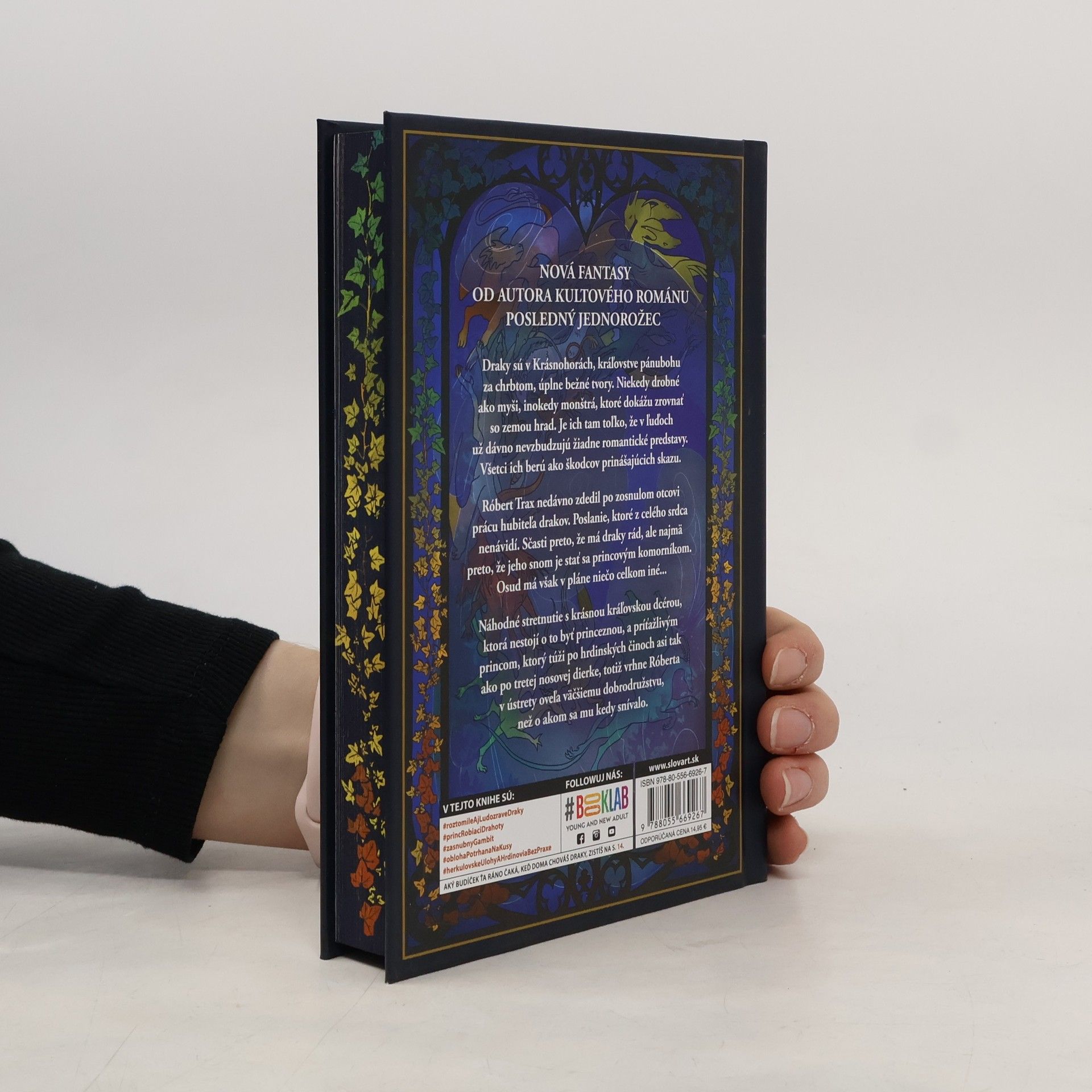 Nový cosy fantasy román od autora celosvetového bestselleru Posledný jednorožec!Draky sú v Krásnohorách, kráľovstve pánubohu za chrbtom, úplne bežné tvory. Niekedy drobné ako myši, inokedy monštrá, ktoré dokážu zrovnať so zemou hrad. Je ich tam toľko, že v ľuďoch už dávno nevzbudzujú žiadne romantické predstavy. Všetci ich berú ako škodcov prinášajúcich skazu alebo prinajmenšom mrzutosti.Gaius Aurélius Konštantín Heliogabalus Trax (ktorý by bol oveľa radšej, keby ho ľudia volali jednoducho Róbert) nedávno zdedil po zosnulom otcovi prácu hubiteľa drakov. Poslanie, ktoré z celého srdca nenávidí. Sčasti preto, že má draky rád, lebo s nimi cíti akúsi zvláštnu spriaznenosť, ale najmä preto, že jeho snom odjakživa bolo prekročiť tieň svojho skromného pôvodu a stať sa princovým komorníkom. Azda netreba dodávať, že osud má v pláne niečo celkom iné... Náhodné stretnutie s krásnou kráľovskou dcérou, ktorá netúži byť princeznou, a príťažlivým princom, ktorý by hrdinské činy radšej prenechal iným, ho totiž vrhne v ústrety oveľa väčšieho dobrodružstva, než o akom sa mu kedy snívalo.