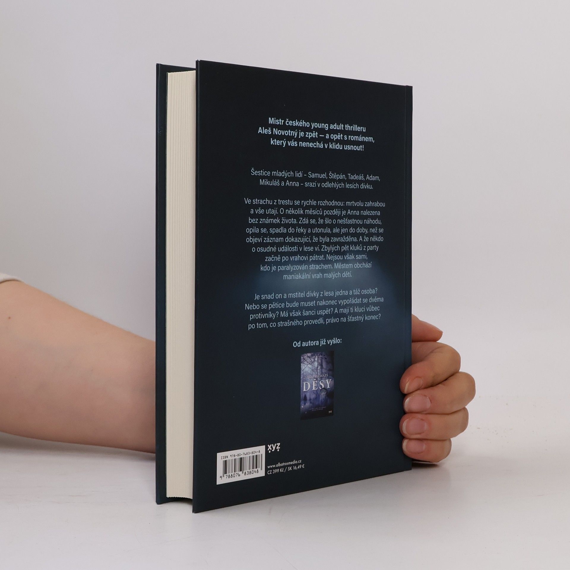 Mistr českého young-adult thrilleru Aleš Novotný je zpět - a opět s románem, který vás nenechá v klidu usnout. Šestice mladých lidí – Samuel, Štěpán, Tadeáš, Adam, Mikuláš a Anna – srazí v odlehlých lesích dívku. Ve strachu z trestu se rychle rozhodnou: mrtvolu zahrabou a vše utají. Oněkolik měsíců později je Anna nalezena bez známek života. Zdá se, že šlo o nešťastnou náhodu, opila se, spadla do řeky a utonula, ale jen do doby, než se objeví záznam dokazující, že byla zavražděna. A že někdo o osudné události v lese ví. Zbylých pět kluků z party začně po vrahovi pátrat. Nejsou však sami, kdo je paralyzován strachem. Městem obchází maniakální vrah malých dětí. Je snad on a mstitel dívky z lesa jedna a táž osoba? Nebo se pětice bude muset nakonec vypořádat se dvěma protivníky? Má však šanci uspět? A mají ti kluci vůbec po tom, co strašného provedli, právo na šťastný konec?