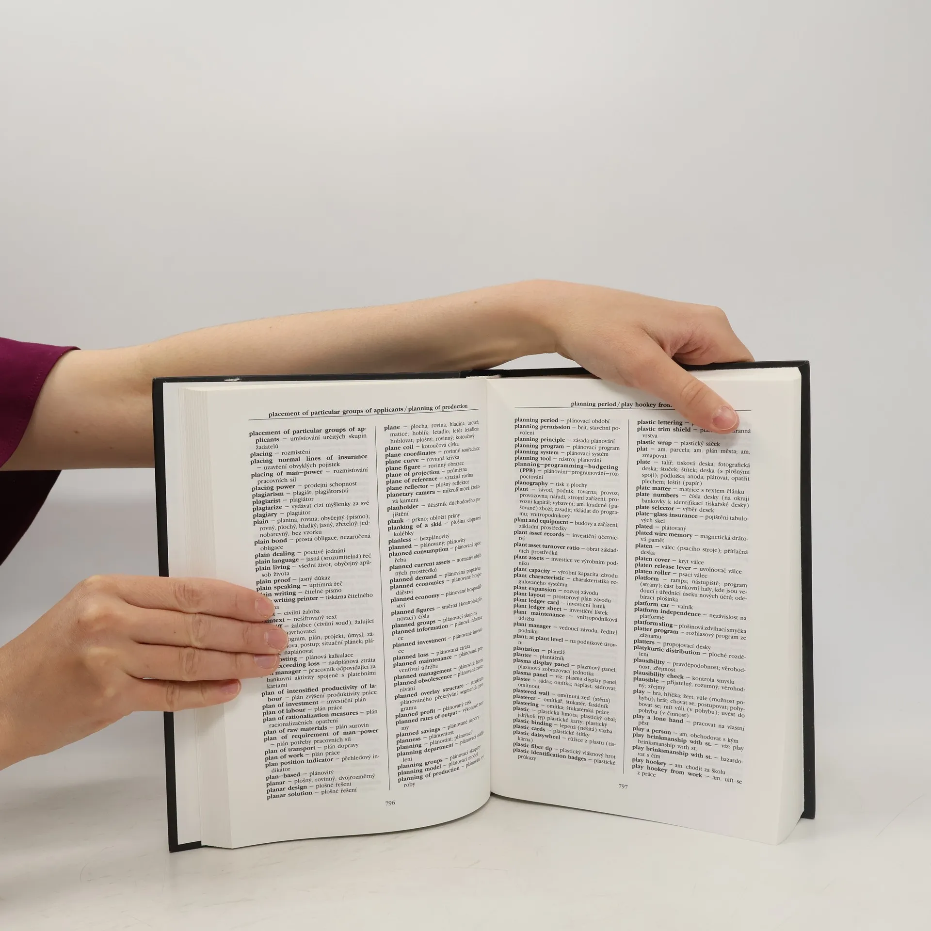Slovník obsahuje přes 100 000 hesel z oblasti ekonomiky, práva a výpočetní techniky. Zahrnuje zejména termíny týkající se ekonomiky - analýza trhu, marketing, obalová technika, vnitřní a zahraniční obchod, celnictví, ceny, devizové hospodářství, doprava, obchodní politika, organizace podniku, podnikové plánování a podnikové početnictví (kalkulace, účetnictví, rozpočetnictví a statistika), bankovnictví a pojišťovnictví, burzovnictví, daně, platební styk (směnky, šeky atd.), telekomunikace, matematika, informatika a výpočetní technika. Slovník obsahuje jak tradiční odbornou slovní zásobu, tak i termíny moderní. Vlastní excerpce současné britské a americké odborné literatury a uzavíraných smluv umožnila zařadit do slovníku termíny, které dosavadní slovníky nezaznamenávají.