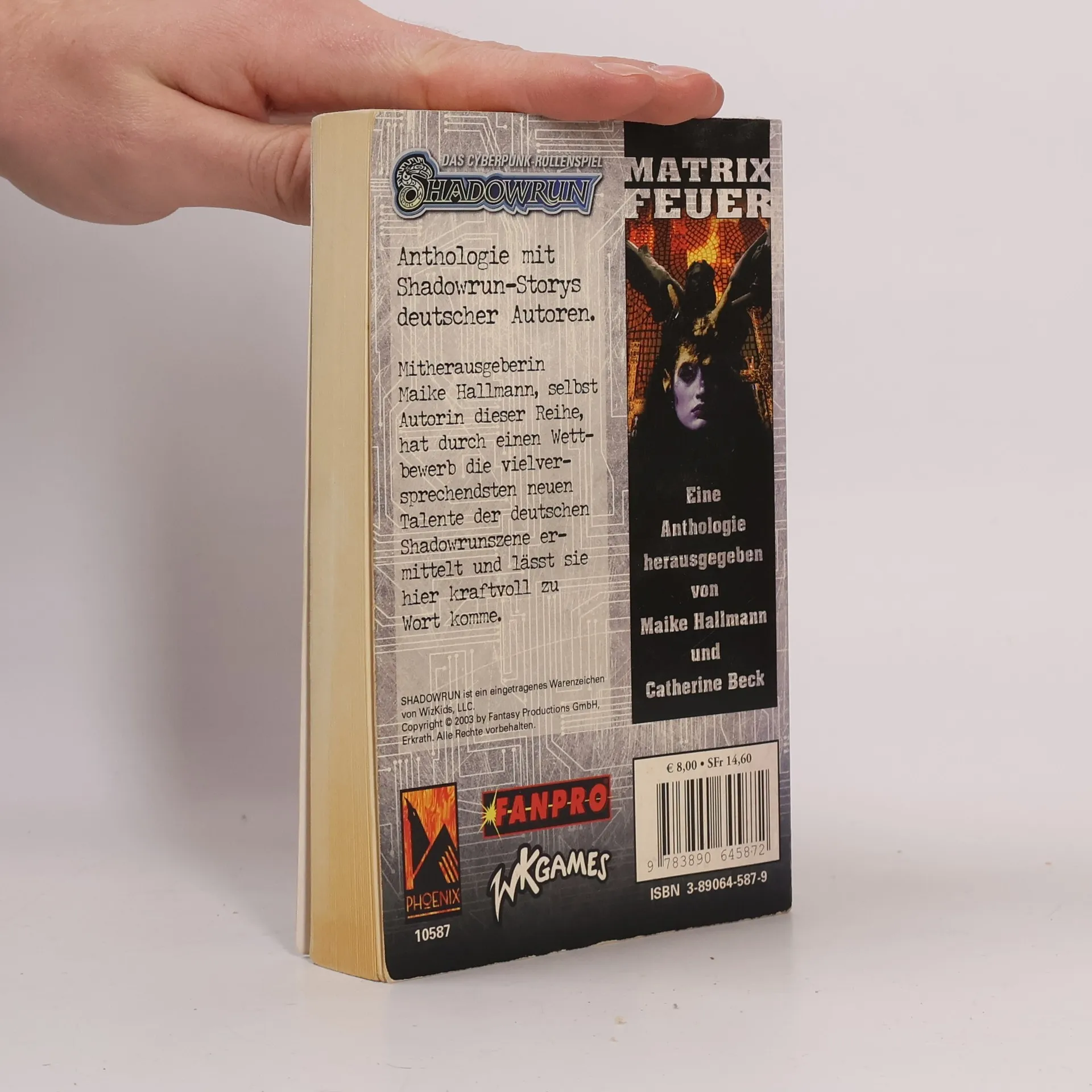 Es handelt sich um eine Anthologie von 16 (!) Kurzgeschichten deren Autorinnen und Autoren von Maike Hallmann in einem Wettbewerb ermittelt wurden. Es sind die vielversprechendsten neuen Talente der deutschen Shadowrun-Szene.