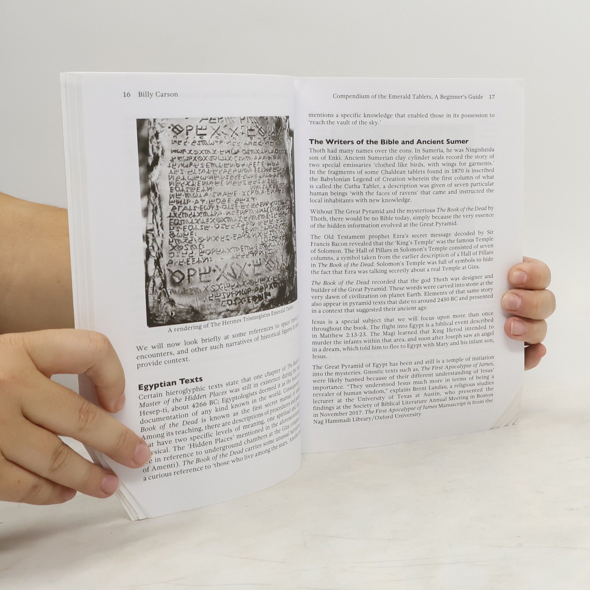 The history of the Emerald Tablets is strange and beyond the belief of modern scientists. Their antiquity is stupendous, dating back some 36,000 years B.C. The author is Thoth, an Atlantean Priest-King who founded a colony in ancient Egypt, wrote the Emerald Tablets in his native Atlantean language which was translated by many famous scholars. This compendium of the Emerald Tablets gives unique insight and understanding of the content. Billy Carson breaks down each tablet and decodes all of the esoteric messages, metaphysics, technology and quantum mechanics for the reader. Because of the tablet's reference to the Egypt and sacred geometry they became a priority reference for those studying the Flower of Life and the Merkaba meditation. Foreword by Jimmy Church. 5 star reviews by Erich Von Daniken, Dr Tara Swart, George Noory, Jason Martell and many more!