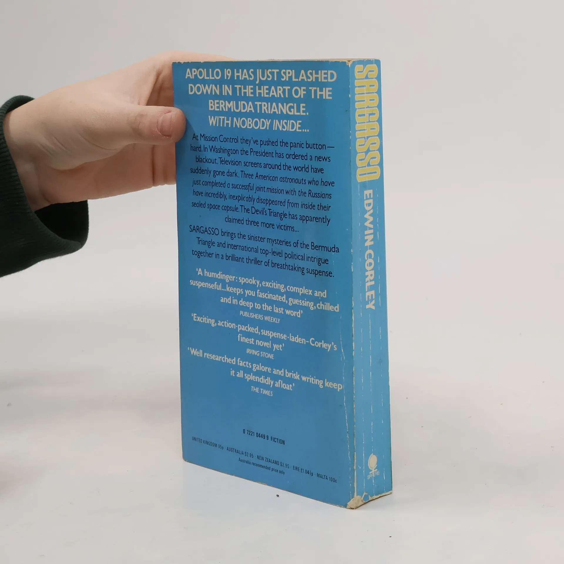 As the whole world watches, an American space capsule splashes down in the Sargasso Sea in the heart of the Bermuda Triangle. Then, in the space of a few seconds, a colossal drama begins to unfold – adding yet another mystery to the far reaches of space and to the unfathomable depths of an area in the sea where, for centuries, men and ships have vanished without a trace… What happens when the capsule is opened is only the beginning of an odyssey that moves swiftly from the bottom of the ocean to the heights of political power, taking the reader from the busy decks of an American aircraft carrier to the silent menace of a Russian “fishing ship”; from the enigmas of the Devil’s Triangle to the ruthless logic of international intrigue; from the desk of a desperate American President guarding a deadly secret to the sea-borne laboratory of an equally desperate American scientist in danger of falling victim to that same secret. An exciting story of underwater adventure, political maneuvering, and baffling natural phenomena.