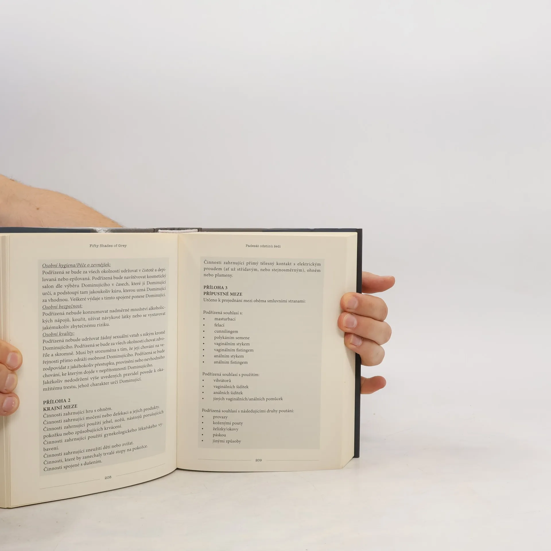 Erotický román o temných touhách v každém z nás… Když se dvaadvacetiletá studentka literatury Anastasia vydává na pohovor s mladým podnikatelem Christianem Greyem, netuší, že potká muže, který jí změní život i hodnoty. Christian je pohledný, chytrý a… tajemný. Naivní a nevinná Anastasia si začíná uvědomovat, že přes jeho skrývaná tajemství jím začíná být úplně posedlá. Ale ani Christian není vůči její kráse, šarmu a charakteru imunní a připouští, že on po ní také touží – ovšem za vlastních, specifických podmínek…
