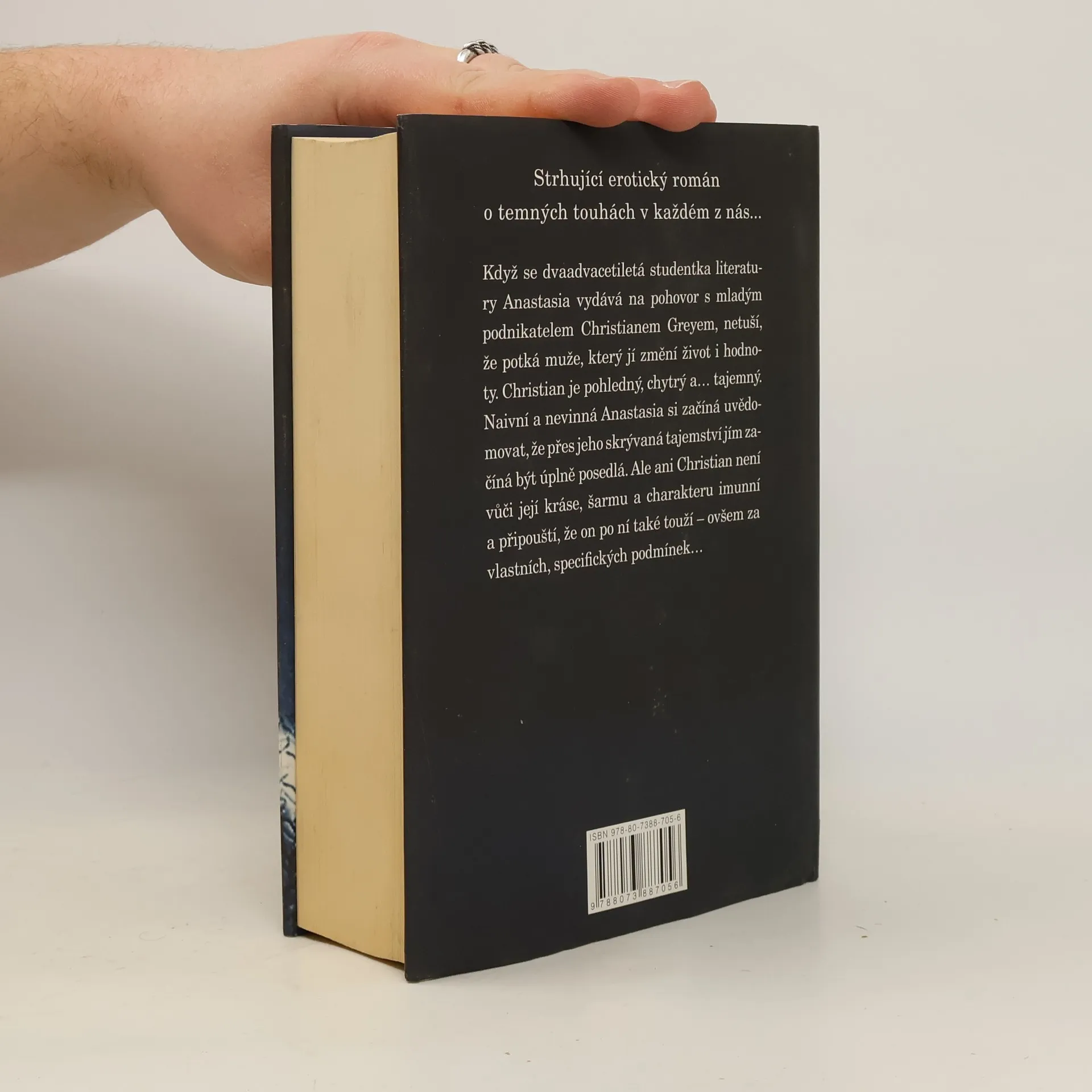 Erotický román o temných touhách v každém z nás… Když se dvaadvacetiletá studentka literatury Anastasia vydává na pohovor s mladým podnikatelem Christianem Greyem, netuší, že potká muže, který jí změní život i hodnoty. Christian je pohledný, chytrý a… tajemný. Naivní a nevinná Anastasia si začíná uvědomovat, že přes jeho skrývaná tajemství jím začíná být úplně posedlá. Ale ani Christian není vůči její kráse, šarmu a charakteru imunní a připouští, že on po ní také touží – ovšem za vlastních, specifických podmínek…