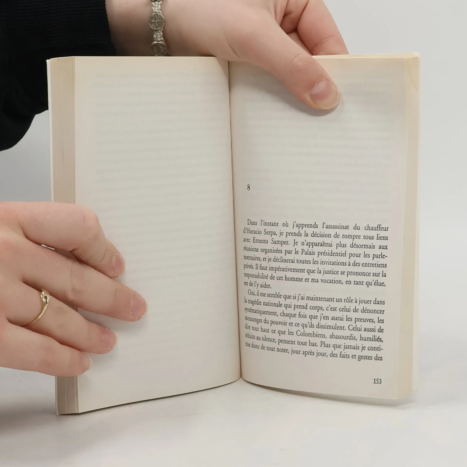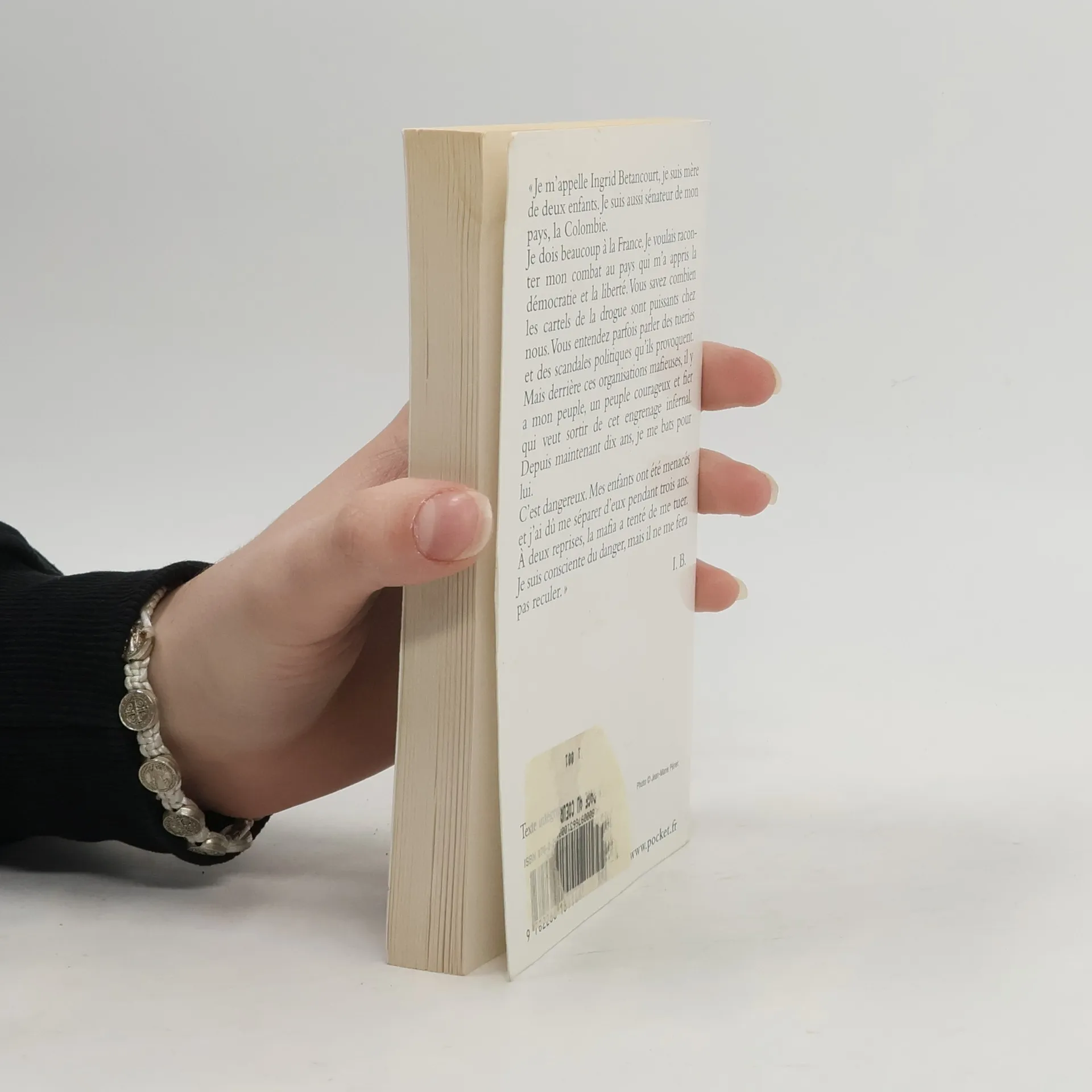 Je m'appelle Ingrid Betancourt, je suis mère de deux enfants. Je suis aussi sénateur de mon pays, la Colombie. Je dois beaucoup à la France. Je voulais raconter mon combat au pays qui m'a appris la démocratie et la liberté. Vous savez combien les cartels de la drogue sont puissants chez nous. Vous entendez parfois parler des tueries et des scandales politiques qu'ils provoquent. Mais derrière ces organisations mafieuses, il y a mon peuple, un peuple courageux et fier qui veut sortir de cet engrenage infernal. Depuis maintenant dix ans, je me bats pour lui. C'est dangereux. Mes enfants ont été menacés et j'ai dû nie séparer d'eux pendant trois ans. A deux reprises, la mafia a tenté de me tuer. Je suis consciente du danger, mais il ne me fera pas reculer.