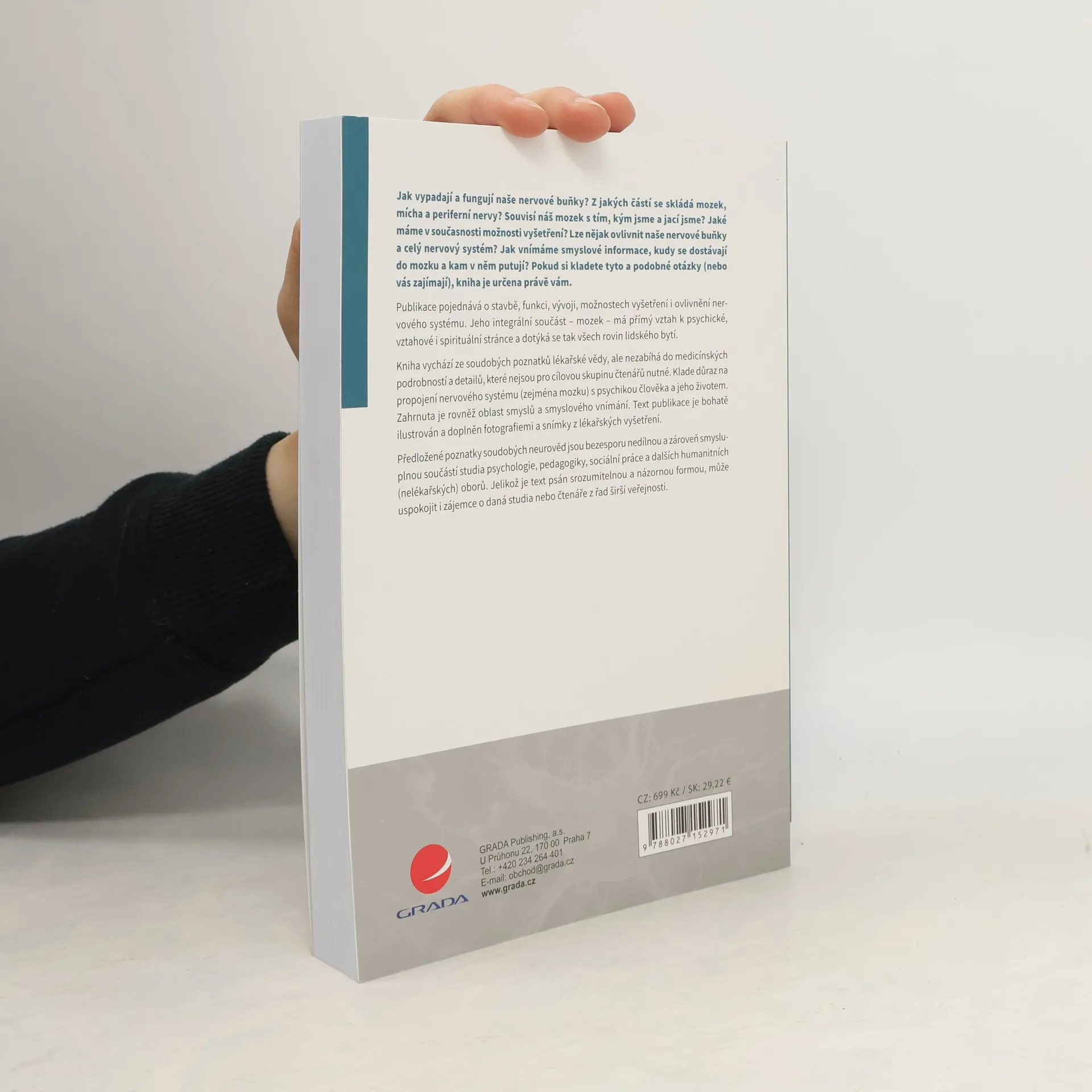 Jak vypadají a fungují naše nervové buňky? Z jakých částí se skládá mozek, mícha a periferní nervy? Souvisí náš mozek s tím, kým jsme a jací jsme? Jaké máme v současnosti možnosti vyšetření? Lze nějak ovlivnit naše nervové buňky a celý nervový systém? Jak vnímáme smyslové informace, kudy se dostávají do mozku a kam v něm putují? Pokud si kladete tyto a podobné otázky (nebo vás zajímají), kniha je určena právě vám. Publikace pojednává o stavbě, funkci, vývoji, možnostech vyšetření i ovlivnění nervového systému. Jeho integrální součást – mozek – má přímý vztah k psychické, vztahové i spirituální stránce a dotýká se tak všech rovin lidského bytí. Text vychází ze soudobých poznatků lékařské vědy, ale nezabíhá do medicínských podrobností a detailů, které nejsou pro cílovou skupinu čtenářů nutné. Klade důraz na propojení nervového systému (zejména mozku) s psychikou člověka a jeho životem. Zahrnuta je rovněž oblast smyslů a smyslového vnímání. Text publikace je bohatě ilustrován a doplněn fotografiemi a snímky z lékařských vyšetření. Předložené poznatky soudobých neurověd jsou bezesporu nedílnou a zároveň smysluplnou součástí studia psychologie, pedagogiky, sociální práce a dalších humanitních (nelékařských) oborů. Jelikož je text psán srozumitelnou a názornou formou, může uspokojit i zájemce o daná studia nebo čtenáře z řad širší veřejnosti.