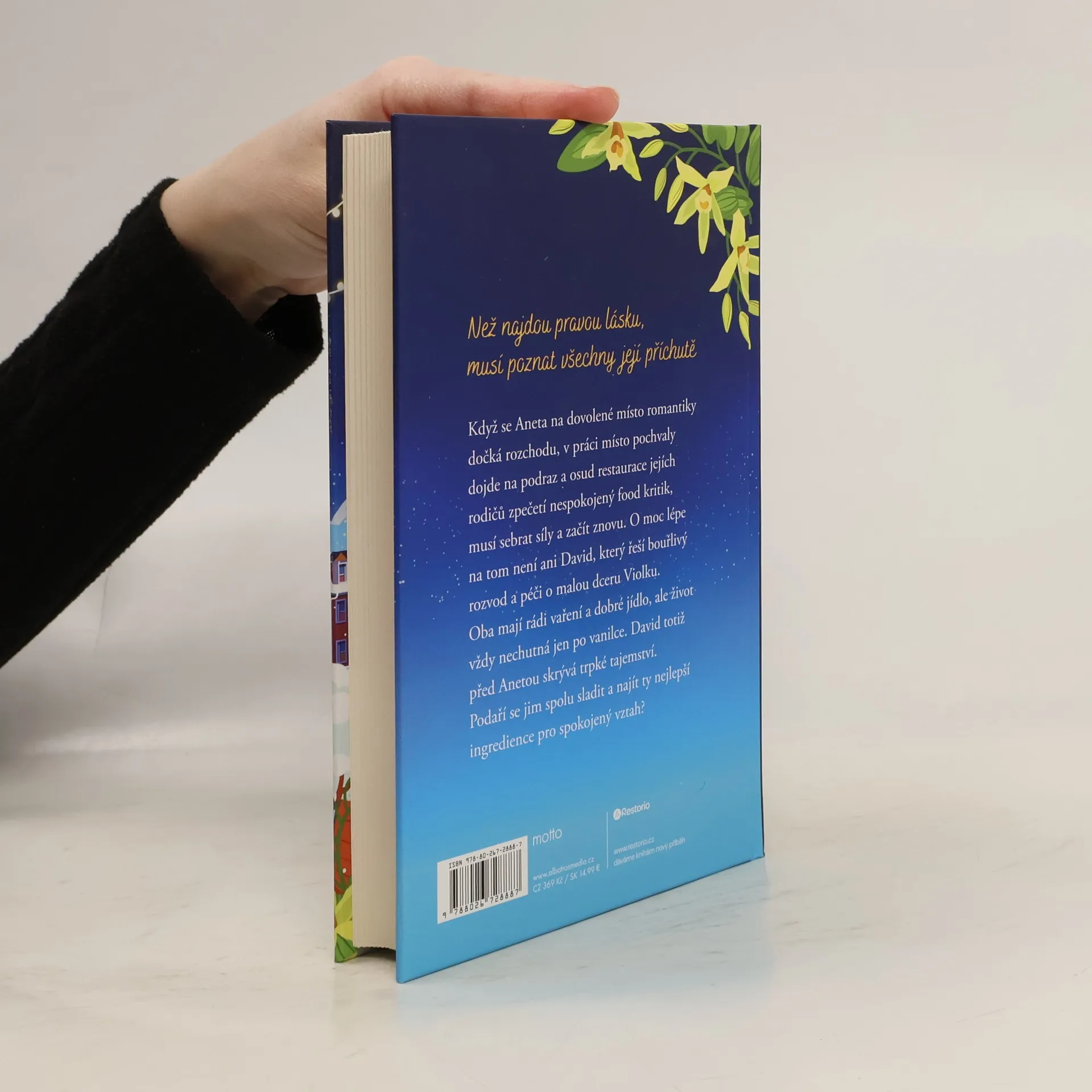 Než najdou pravou lásku, musí poznat všechny její příchutěRomán plný lásky, chutí i vůní vypráví o Anetě, která neprožívá moc příznivé období. Místo romantiky na exotické dovolené se čeká rozchodu a nedaří se jí ani v práci, kde ji podrazí kolega. A aby toho nebylo málo, osud restaurace jejích rodičů zpečetí nespokojený food kritik. Aneta musí sebrat síly a začít jednat. Náročné období má taky David, který řeší bouřlivý rozvod a péči o malou dceru Violku. Oba mají rádi vaření a dobré jídlo, ale život vždy nechutná jen po vanilce. Občas je dost trpký. David totiž před Anetou skrývá tajemství. Podaří se jim spolu sladit a najít ty nejlepší ingredience pro spokojený vztah? Život se ale nedá naplánovat podle receptu.