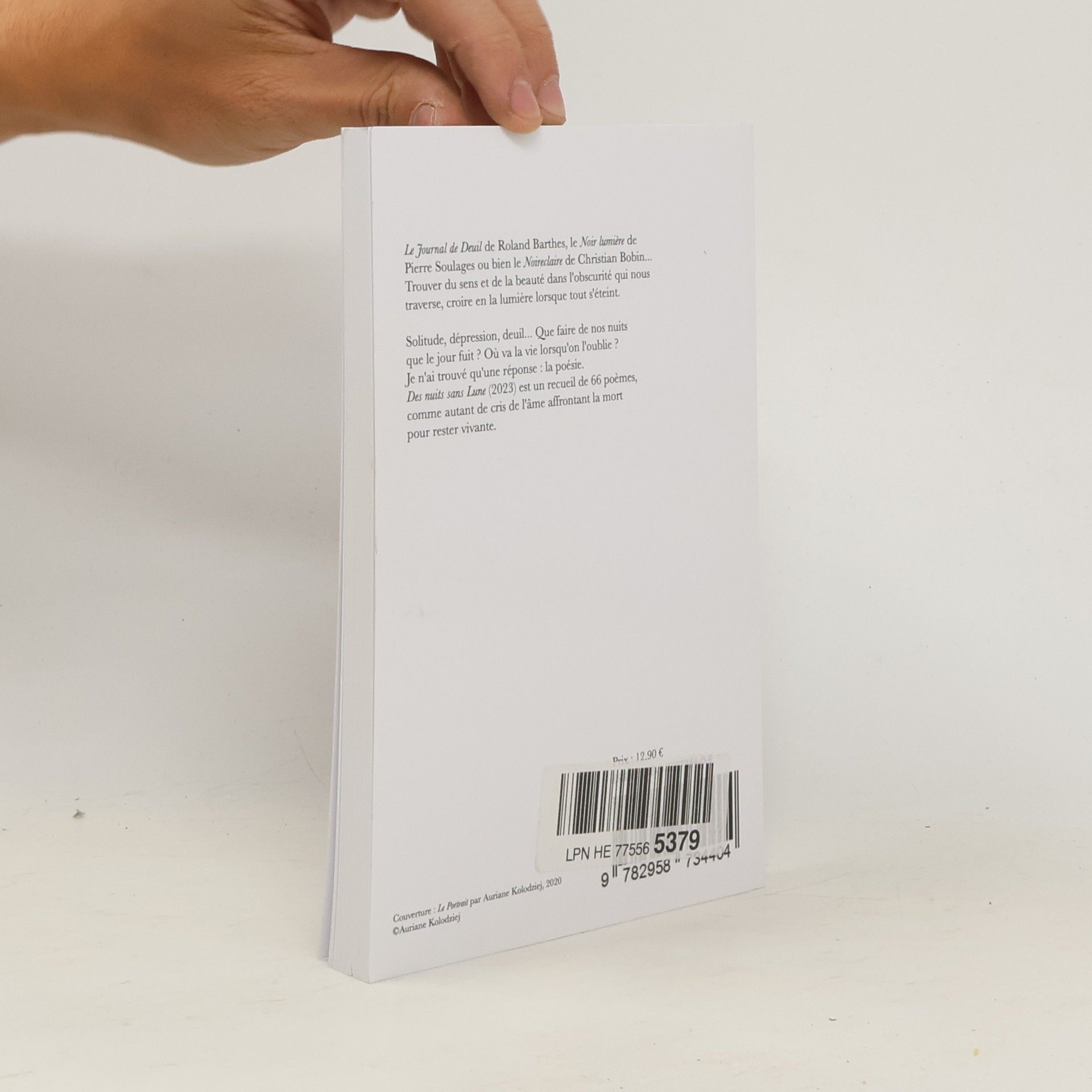 Le Journal de Deuil de Roland Barthes, le Noir lumière de Pierre Soulages ou bien le Noireclaire de Christian Bobin... Trouver du sens et de la beauté dans l'obscurité qui nous traverse, croire en la lumière lorsque tout s'éteint.Solitude, dépression, deuil... Que faire de nos nuits que le jour fuit ? Où va la vie lorsqu'on l'oublie ? Je n'ai trouvé qu'une réponse : la poésie. Des nuits sans Lune (2023) est un recueil de 66 poèmes, comme autant de cris de l'âme affrontant la mort pour rester vivante.
