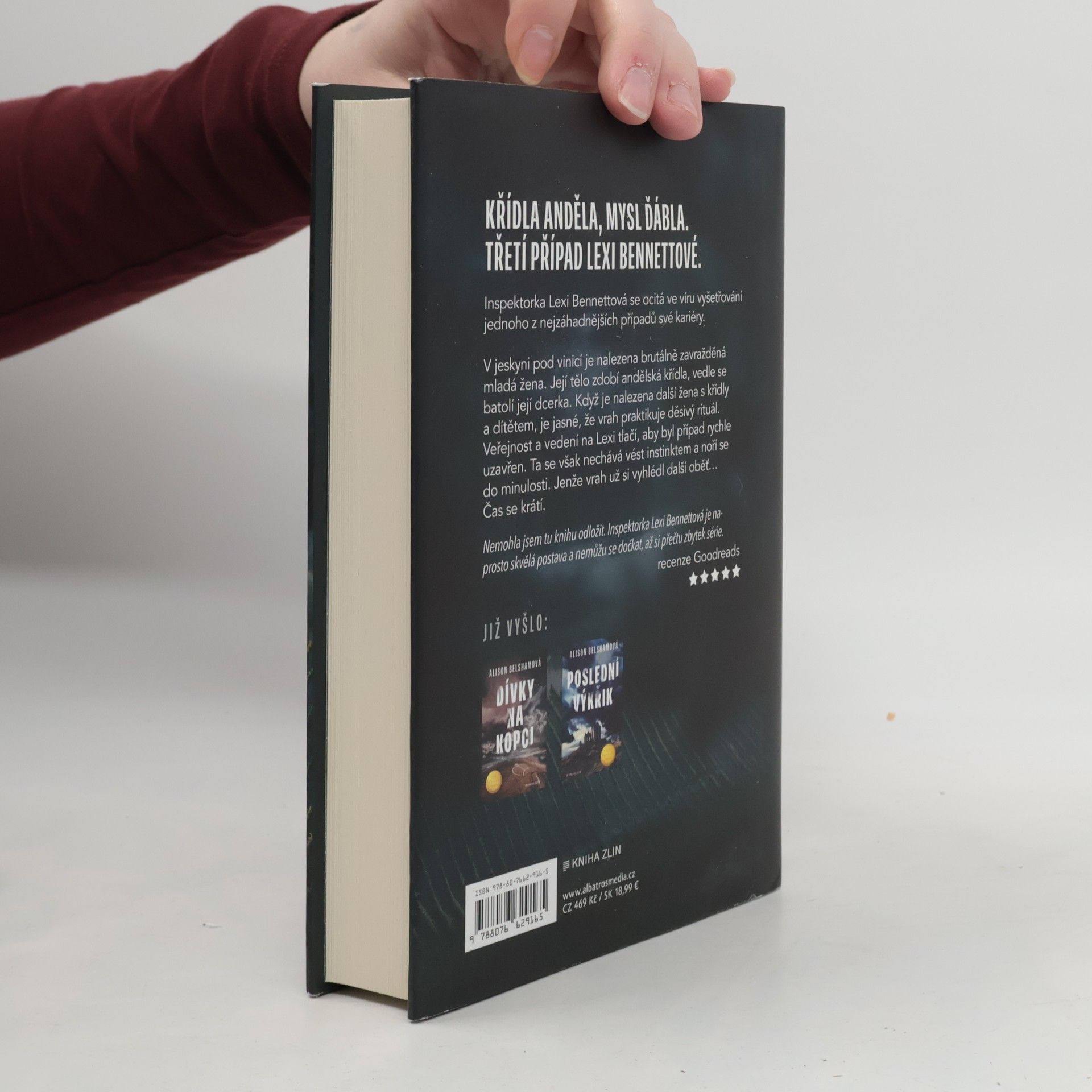 Křídla anděla, mysl ďábla. Třetí případ Lexi Bennettové. Inspektorka Lexi Bennettová se ocitá ve víru vyšetřování jednoho z nejzáhadnějších případů své kariéry. V jeskyni pod vinicí je nalezena brutálně zavražděná mladá žena. Její tělo zdobí andělská křídla, vedle se batolí její dcerka. Když je nalezena další žena s křídly a dítětem, je jasné, že vrah praktikuje děsivý rituál. Veřejnost a vedení na Lexi tlačí, aby byl případ rychle uzavřen. Ta se však nechává vést instinktem a noří se do minulosti. Jenže vrah už si vyhlédl další oběť… Čas se krátí.