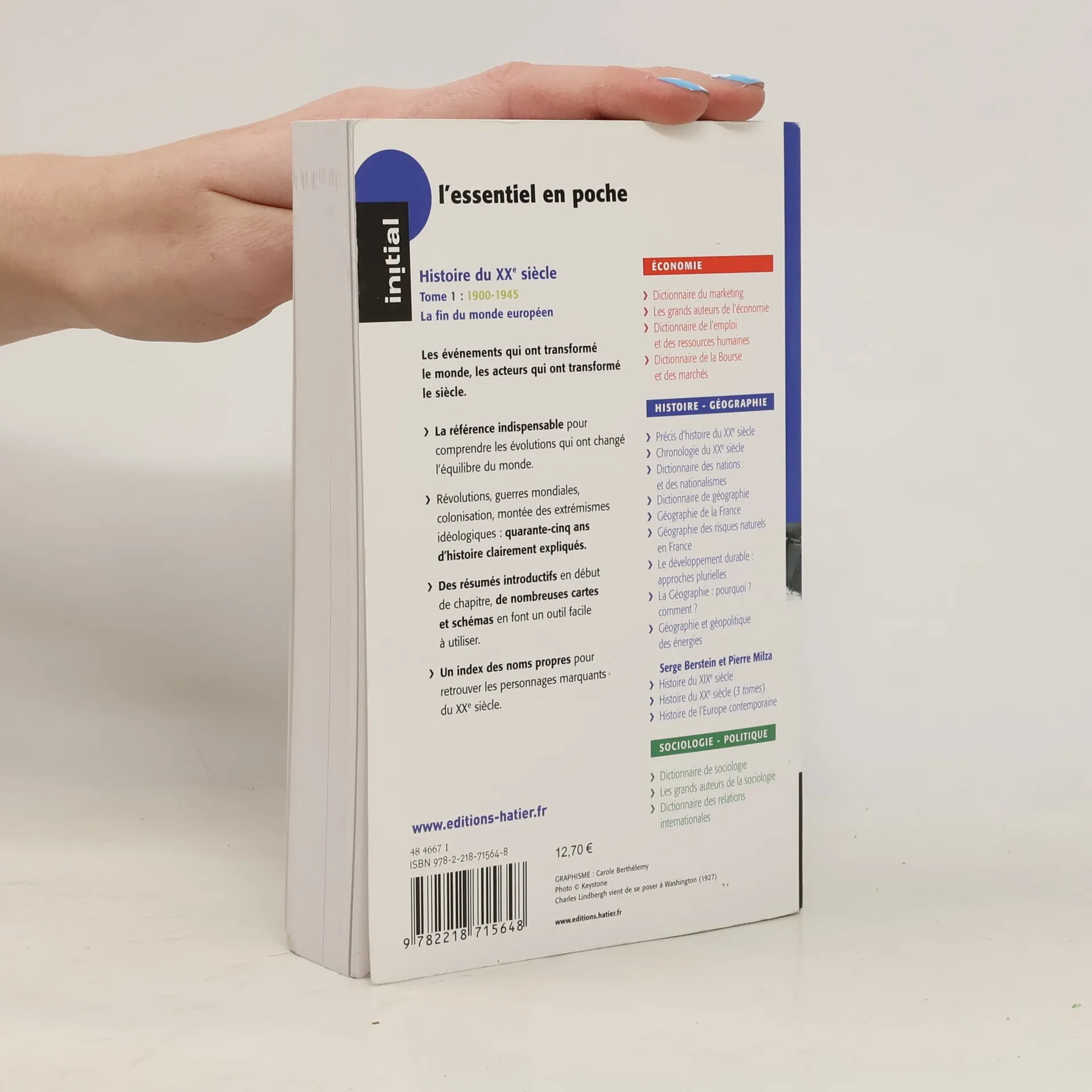 Quatrième de couverture:Histoire du XXe siècle, les événements qui ont transformé le monde, les acteurs qui ont transformé le siècle. Tome 1 : 1900-1945, la fin du «monde européen» • La référence indispensable pour comprendre les évolutions qui ont changé l'équilibre du monde. • Révolutions, guerres mondiales, colonisation, montée des extrémismes idéologiques : quarante-cinq ans d'histoire clairement expliqués. • Des résumés introductifs en début de chapitre, de nombreuses cartes et des schémas en font un outil facile à utiliser. • Un index des noms propres pour retrouver les personnages marquants du XXe siècle.