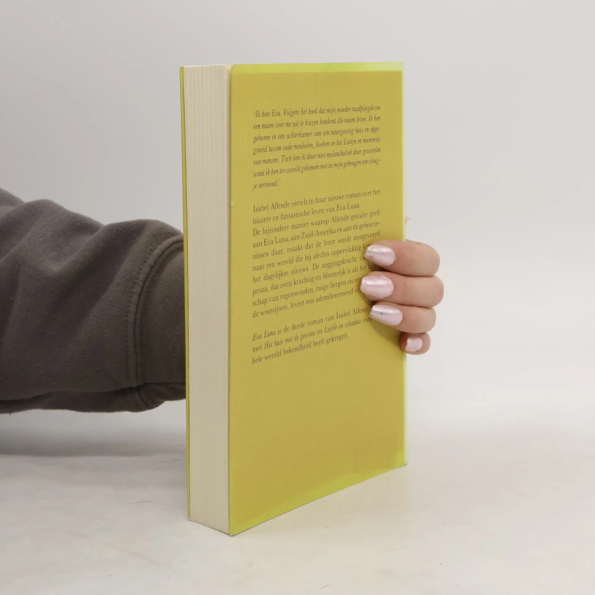 'Ik heet Eva. Ik ben geboren in een achterkamer van een naargeestig huis en opgegroeid tussen oude meubelen, boeken in het Latijn en mummies van mensen. Toch ben ik daar niet melancholiek door geworden want ik ben ter wereld gekomen met in mijn geheugen een vleugje oerwoud.' In een stijl die even krachtig en kleurrijk is als het Zuid-Amerikaanse landschap van regenwouden, ruige bergen en verdorstende woestijnen, vertelt Isabel Allende het adembenemende verhaal van het bizarre en fantastische leven van Eva Luna. Ze voert de lezer mee naar een exotische wereld waarin werkelijkheid en verbeelding naadloos in elkaar overgaan.