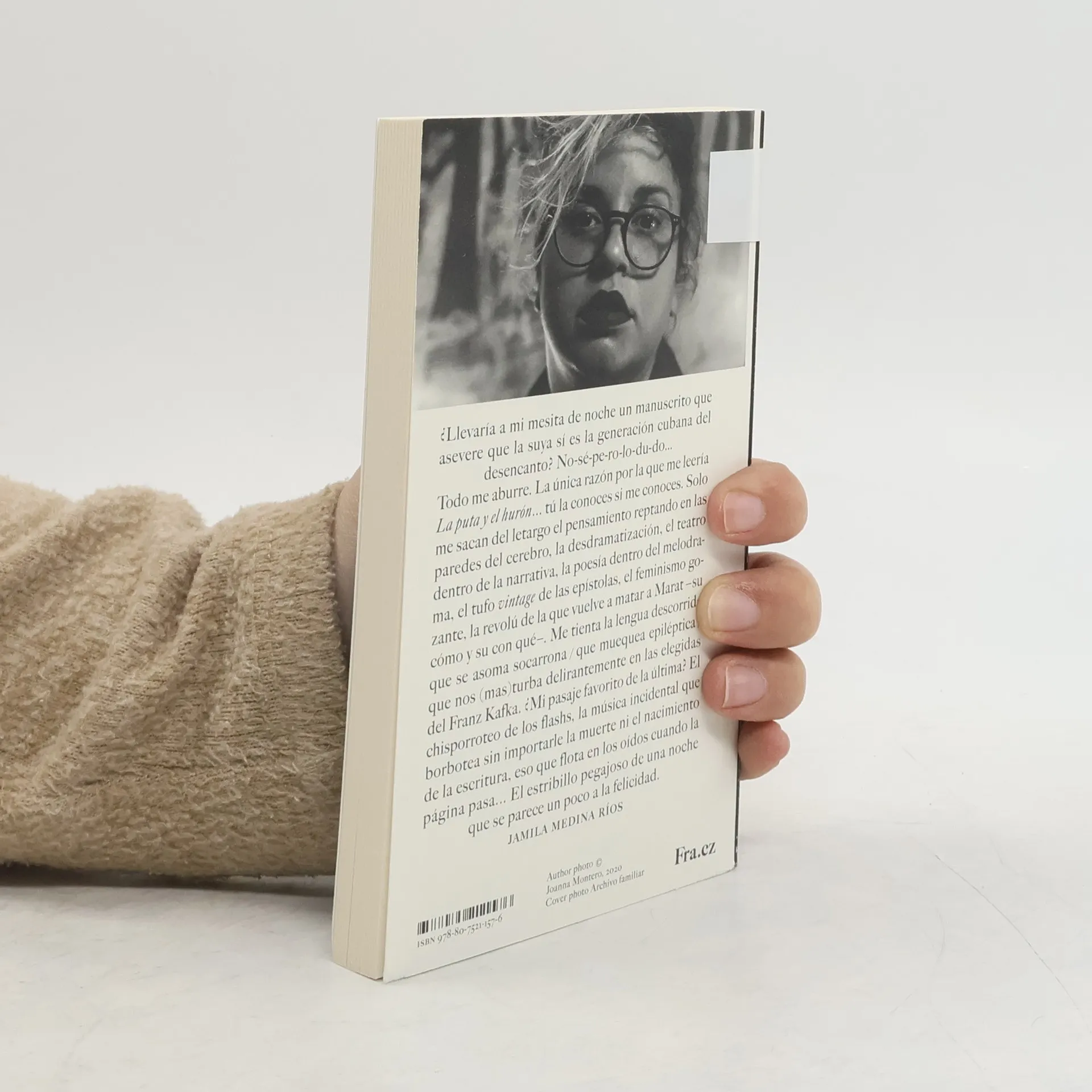 La puta y el hurón, novela de Martha Luisa Hernández Cadenas (Martica Minipunto), premio Franz Kafka 2020.Las palabras de Jamila Medina Ríos en la contraportada: “¿Llevaría a mi mesita de noche un manuscrito que asevere que la suya sí es la generación cubana del desencanto? No-sé-pe-ro-lo-du-do… Todo me aburre. La única razón por la que me leería La puta y el hurón… tú la conoces si me conoces. Solo me sacan del letargo el pensamiento reptando en las paredes del cerebro, la desdramatización, el teatro dentro de la narrativa, la poesía dentro del melodrama, el tufo vintage de las epístolas, el feminismo gozante, la revolú de la que vuelve a matar a Marat –su cómo y su con qué–. Me tienta la lengua descorrida que se asoma socarrona / que muequea epiléptica / que nos (mas)turba delirantemente en las elegidas del Franz Kafka. ¿Mi pasaje favorito de la última? El chisporroteo de los flashs, la música incidental que borbotea sin importarle la muerte ni el nacimiento de la escritura, eso que flota en los oídos cuando la página pasa… El estribillo pegajoso de una noche que se parece un poco a la felicidad.”