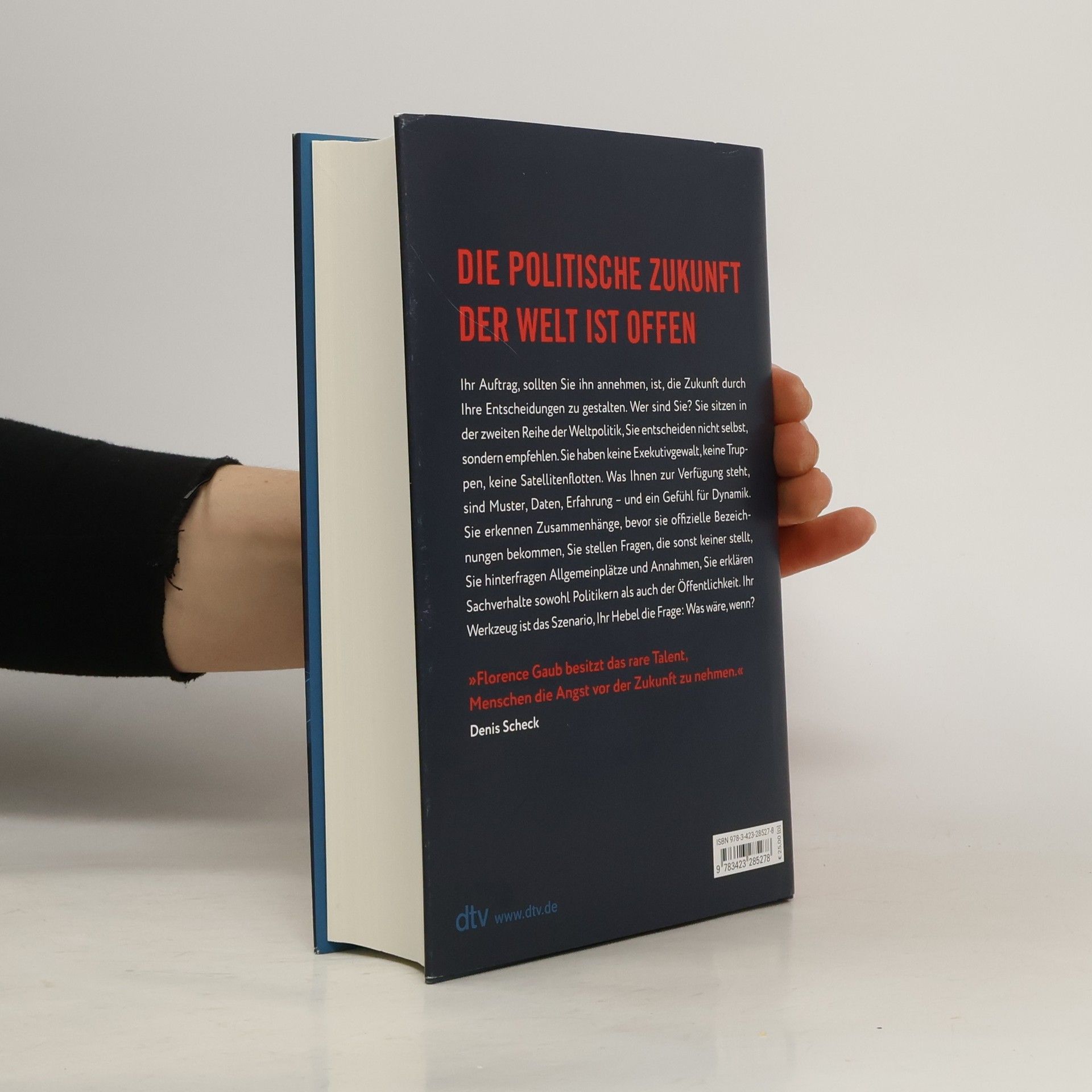 Die politische Zukunft der Welt ist offen. ›Szenario‹: das Buch der Optionen. Die Zukunft erscheint offener, furchteinflößender als vor wenigen Jahren. Wie sie aussieht, hängt nicht nur von Russland und den USA ab, sondern von einer großen Anzahl von Akteuren. Wir bekommen so das Gefühl zurück, dass auch wir eine Rolle in unserer eigenen Zukunft spielen, indem wir uns bewusst machen, was wir tatsächlich wissen, was wir nicht wissen und durch Annahmen ersetzt haben, und vor allem, welche Handlungsoptionen es gibt. Florence Gaub lädt dazu ein, selbst außenpolitische Entscheidungen zu treffen: Anstatt nur Zuschauer mehr oder weniger plausibler Szenarien zu sein, folgt man unterschiedlichen Entscheidungspfaden. Das Buch vermittelt Einblicke in mögliche Entscheidungsprozesse und ein Gefühl der Selbstbestimmung.