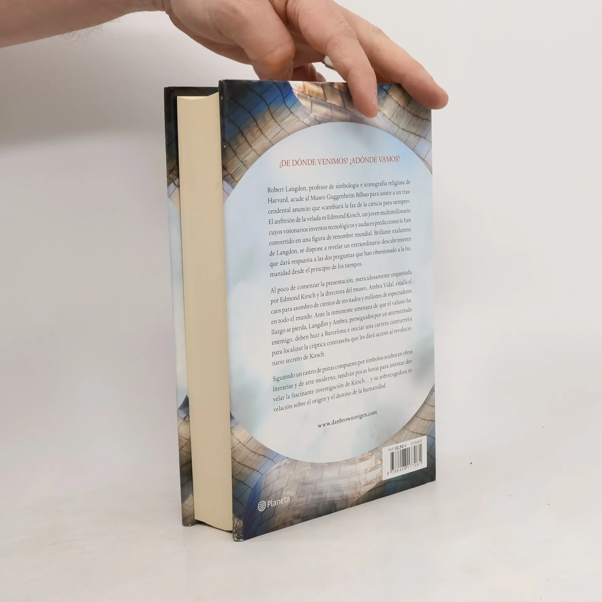Robert Langdon, profesor de simbología e iconografía religiosa de la universidad de Harvard, acude al Museo Guggenheim Bilbao para asistir a un trascendental anuncio que «cambiará la faz de la ciencia para siempre». El anfitrión de la velada es Edmond Kirsch, un joven multimillonario cuyos visionarios inventos tecnológicos y audaces predicciones lo han convertido en una figura de renombre mundial. Kirsch, uno de los alumnos más brillantes de Langdon anos atrás, se dispone a revelar un extraordinario descubrimiento que dará respuesta a las dos preguntas que han obsesionado a la humanidad desde el principio de los tiempos.