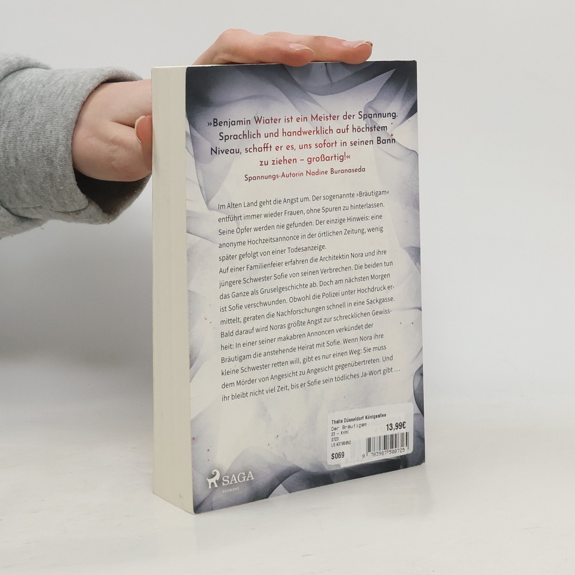 Ein rauschendes Familienfest, das zum Albtraum wird  Im Alten Land geht die Angst um. Der sogenannte „Bräutigam“ entführt immer wieder Frauen, ohne Spuren zu hinterlassen. Seine Opfer werden nie gefunden. Der einzige Hinweis: eine anonyme Hochzeitsannonce in der örtlichen Zeitung, wenig später gefolgt von einer Todesanzeige.  Auf einer Familienfeier erfahren die Architektin Nora und ihre jüngere Schwester Sofie von seinen Verbrechen. Die beiden tun das Ganze als Gruselgeschichte ab. Doch am nächsten Morgen ist Sofie verschwunden. Obwohl die Polizei unter Hochdruck ermittelt, geraten die Nachforschungen schnell in eine Sackgasse. Bald darauf wird Noras größte Angst zur schrecklichen Gewissheit: In einer seiner makabren Annoncen verkündet der Bräutigam die anstehende Heirat mit Sofie. Wenn Nora ihre kleine Schwester retten will, gibt es nur ein Mittel: Sie muss dem Mörder von Angesicht zu Angesicht gegenübertreten. Und ihr bleibt nicht viel Zeit, bis er ihr sein tödliches Ja-Wort gibt …